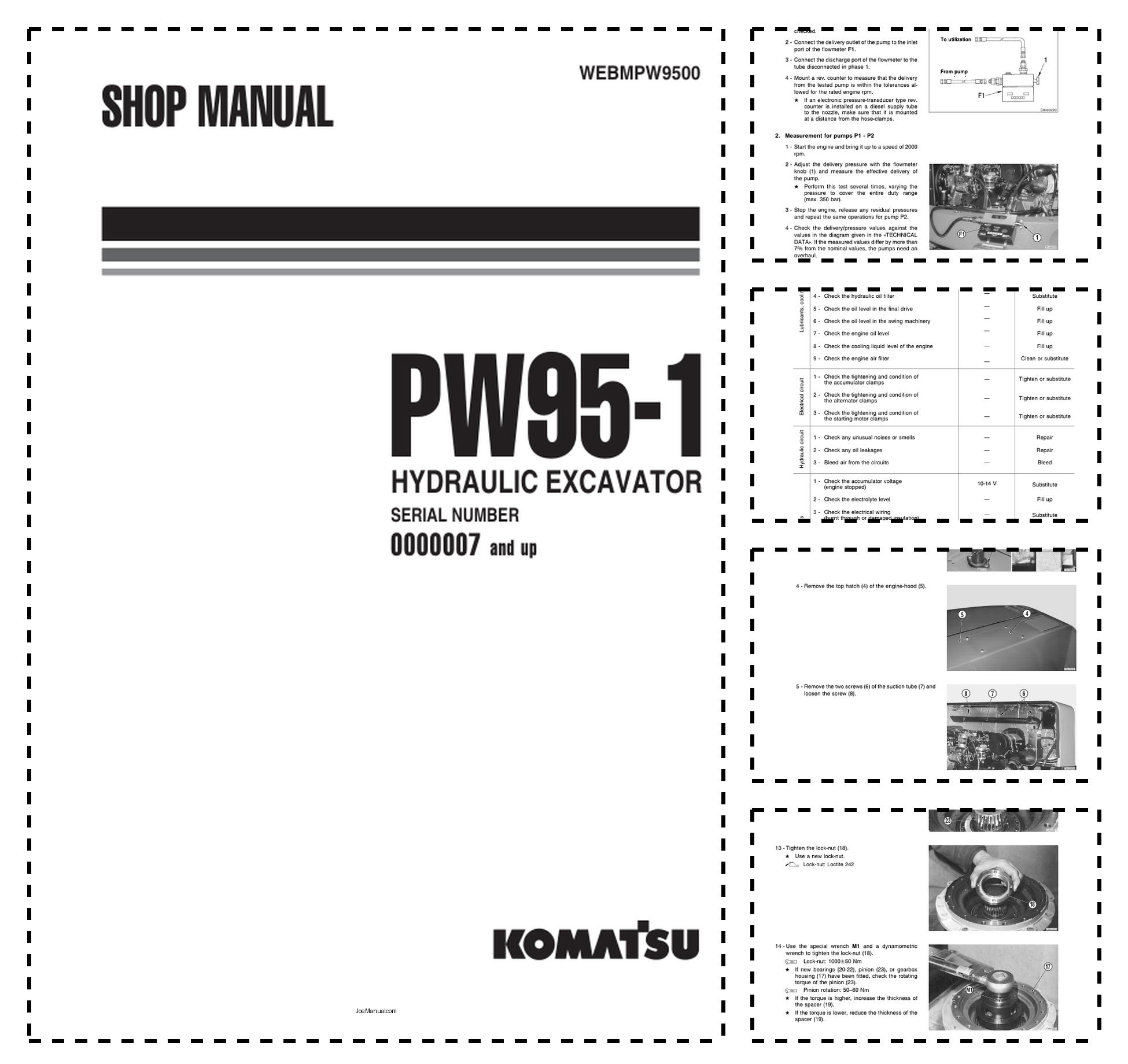 Komatsu PW95-1 Wheeled Excavator Workshop Manual SN 0000007 and UP