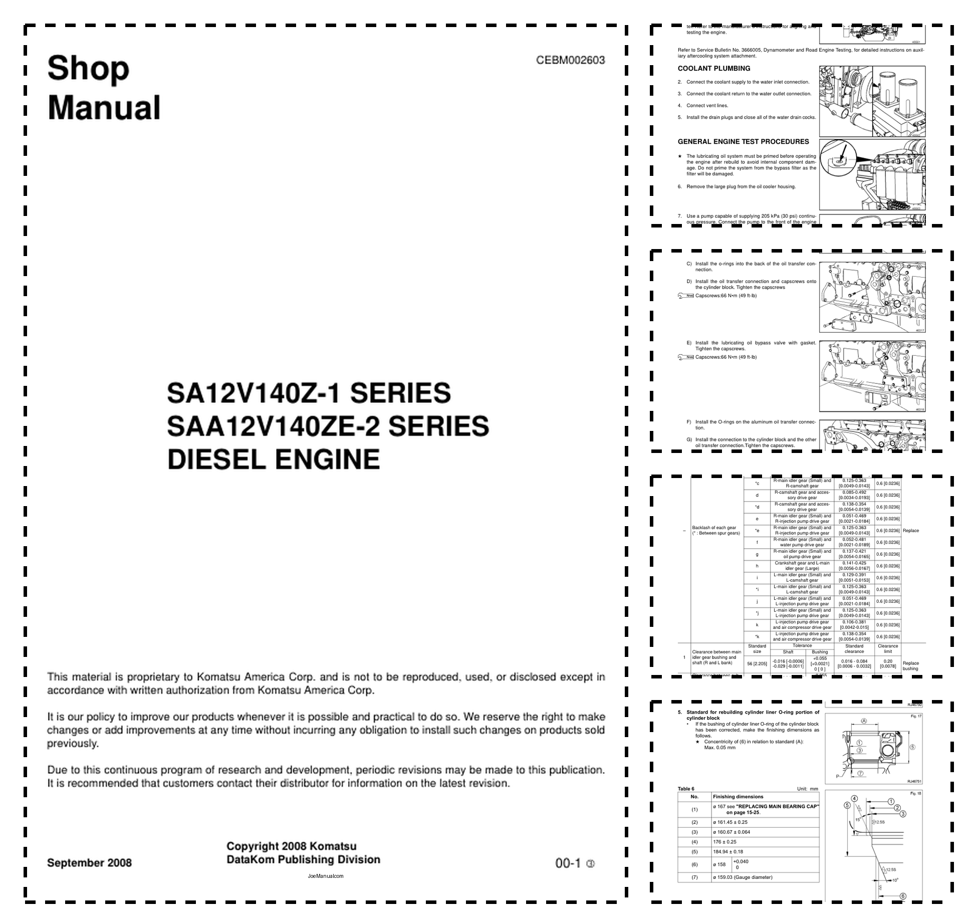 Komatsu SA12V140Z-1 SAA12V140ZE-2 Series Diesel Engine Workshop Manual