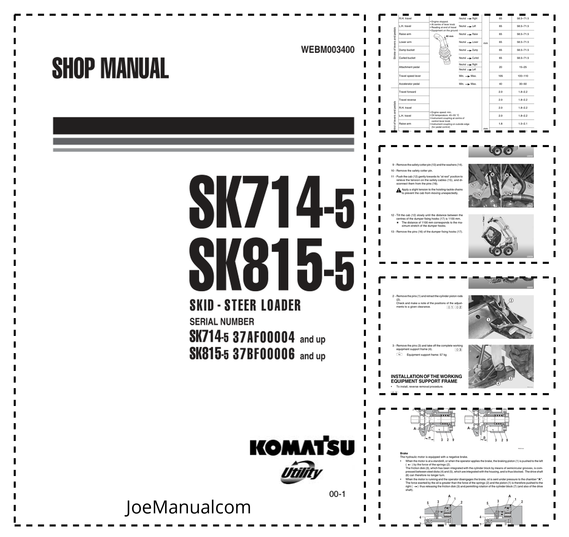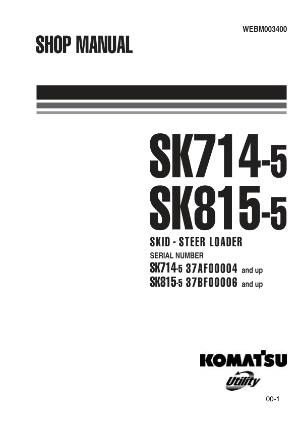 Komatsu SK714-5 SK815-5 Skid Steer Workshop Manual SN 37AF00004 37BF00006 and UP