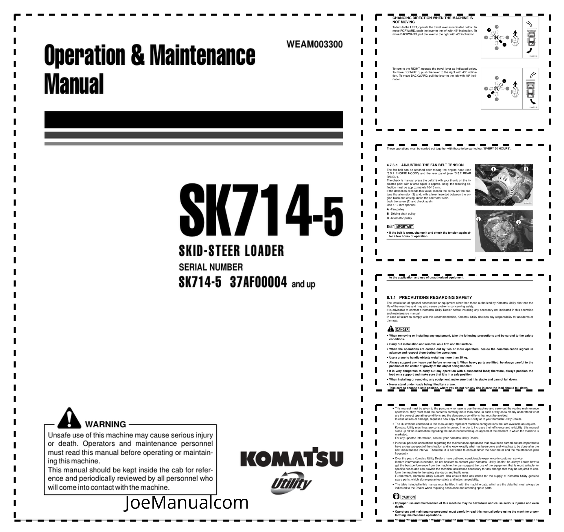 Komatsu SK714-5 Skid Steer Operation and Maintenance Manual SN 37AF0004 and UP WEAM003300