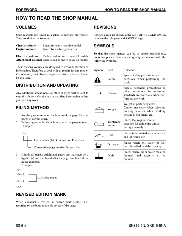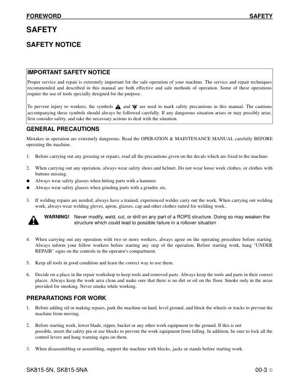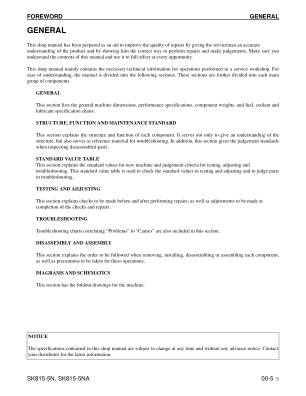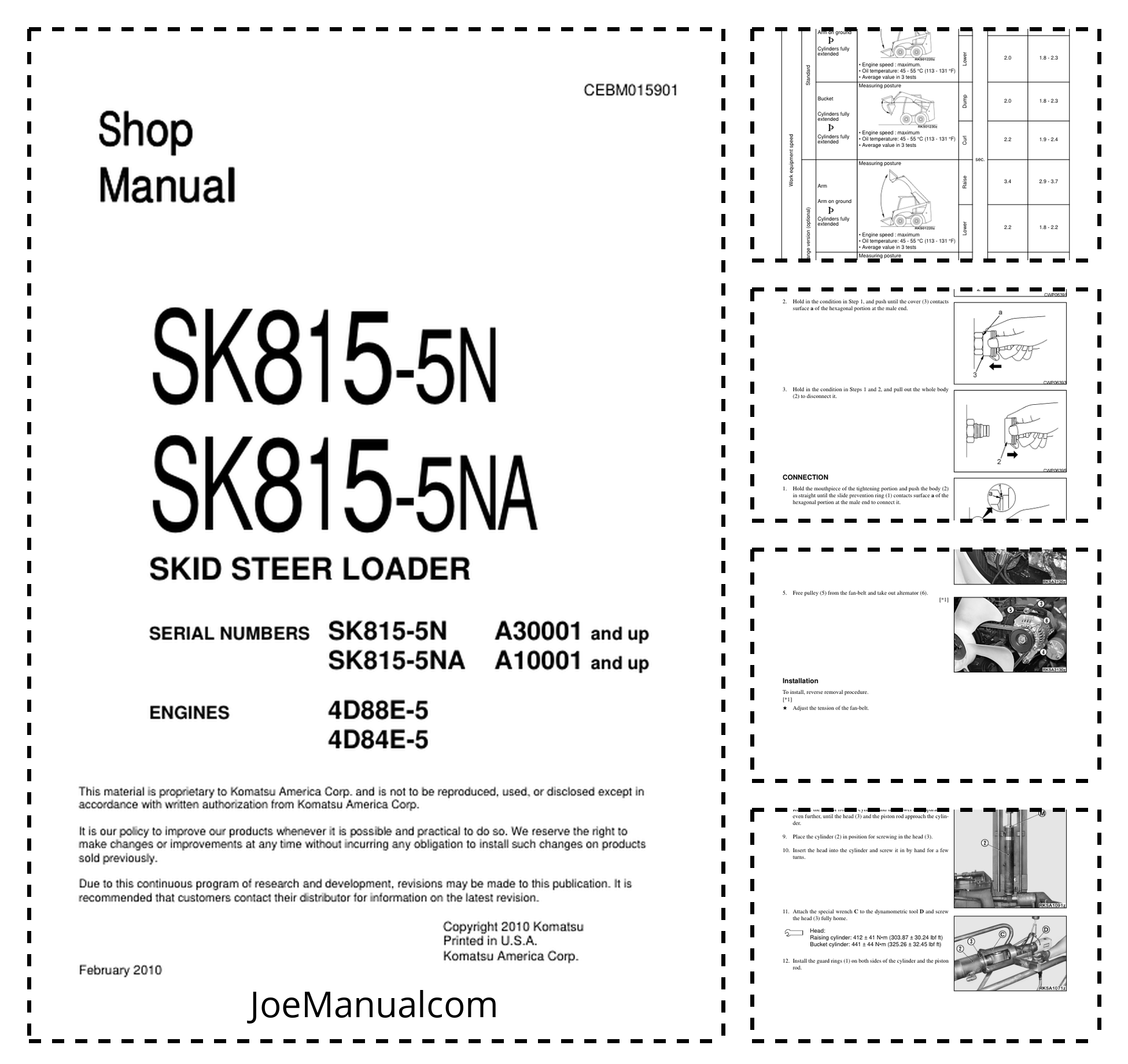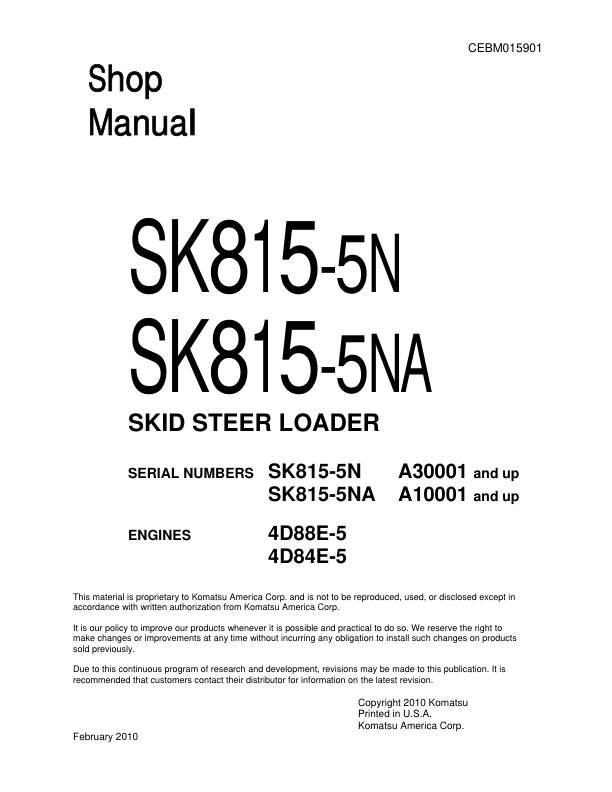 Komatsu SK815-5 SK815-5NA Skid Steer Workshop Manual SN A300001 A10001 and UP