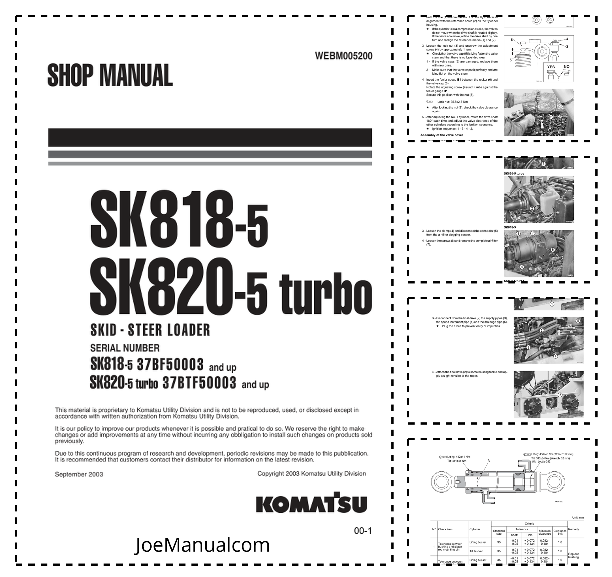Komatsu SK818-5 SK820-5 Skid Steer Workshop Manual WEBM005200