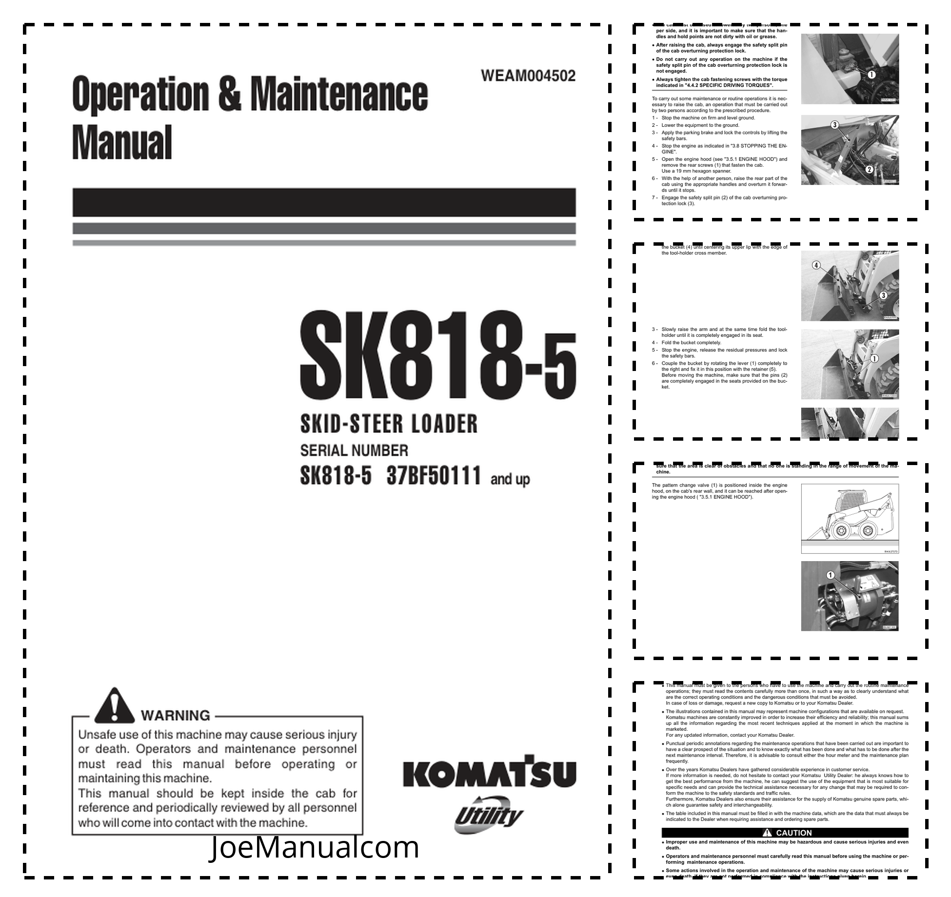 Komatsu SK818-5 Skid Steer Operation and Maintenance Manual SN 37BTF50111 and UP