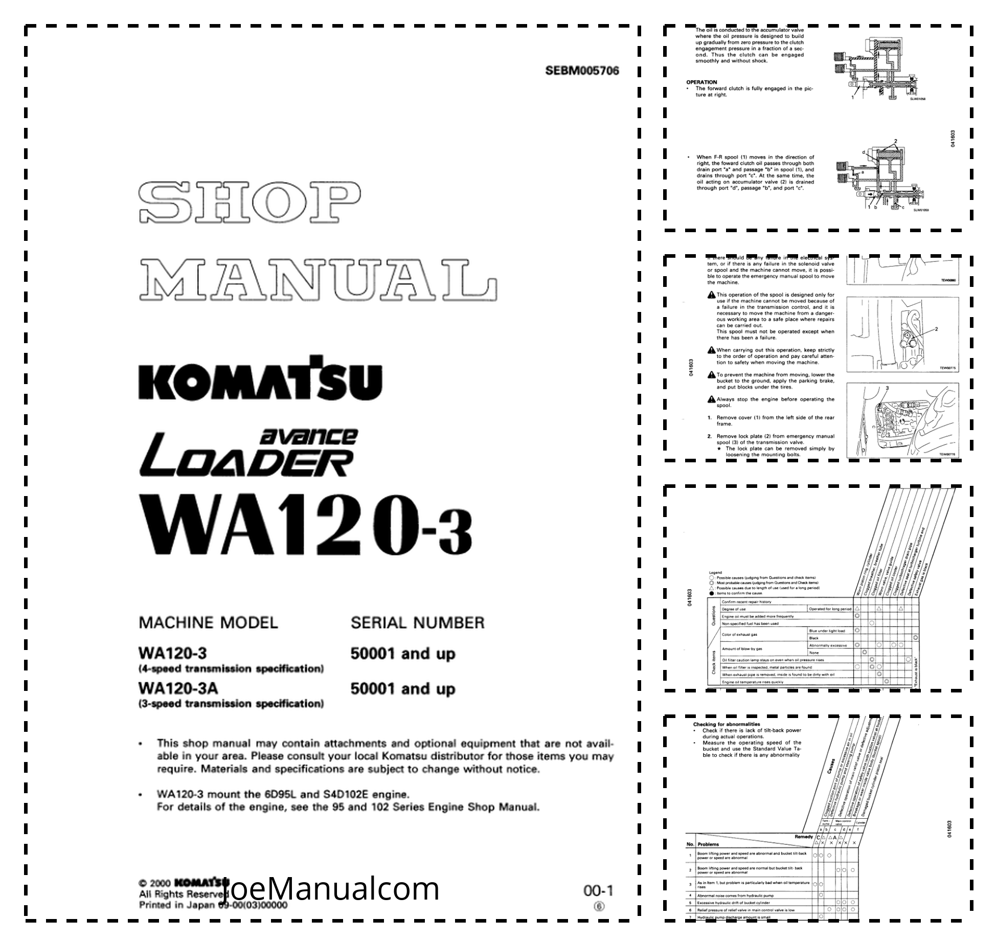 Komatsu WA120-3 Avance Wheel Loader Workshop Manual SN 50001 and UP