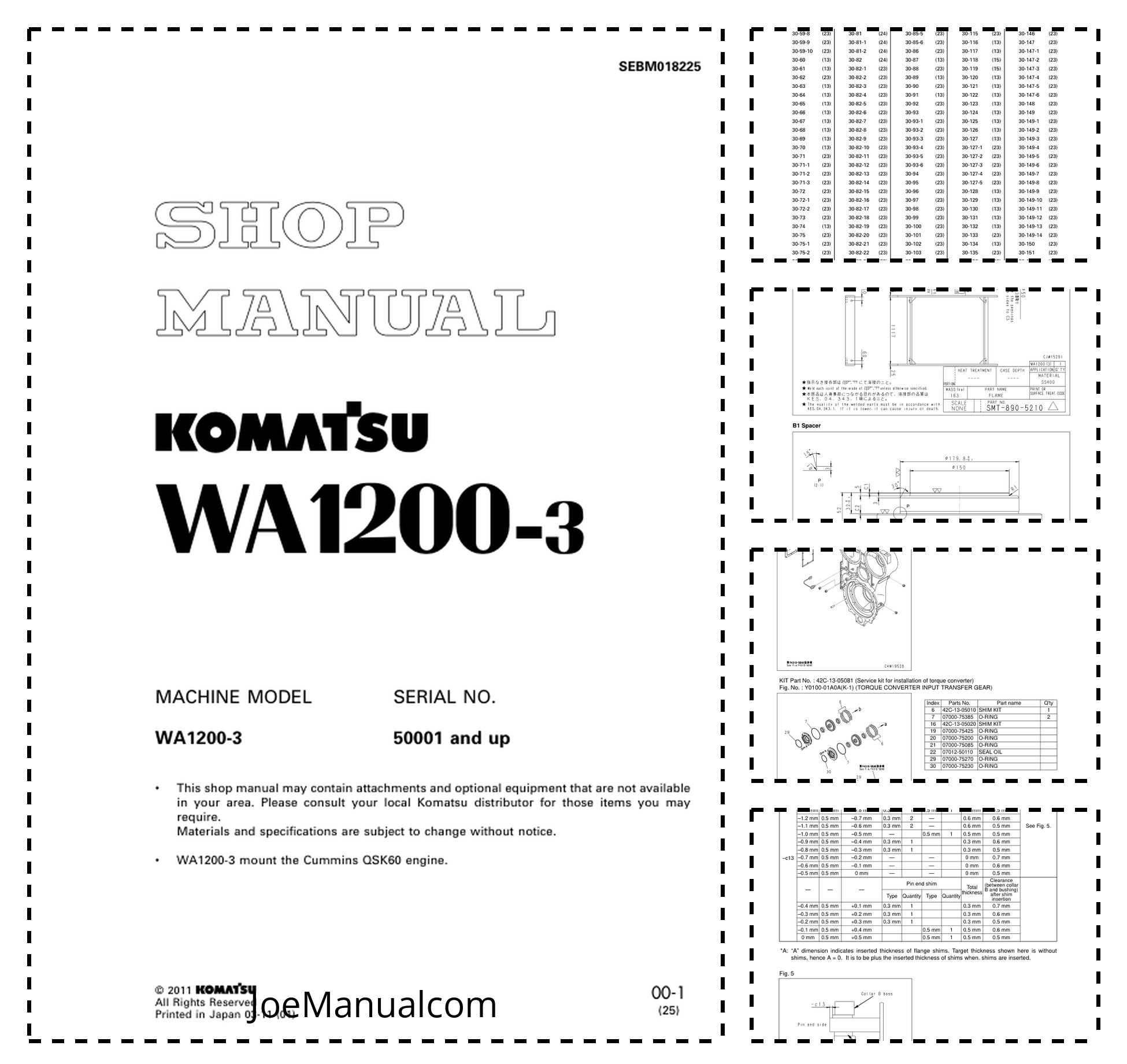 Komatsu WA1200-3 Wheel Loader Workshop Manual SN 50001 and UP