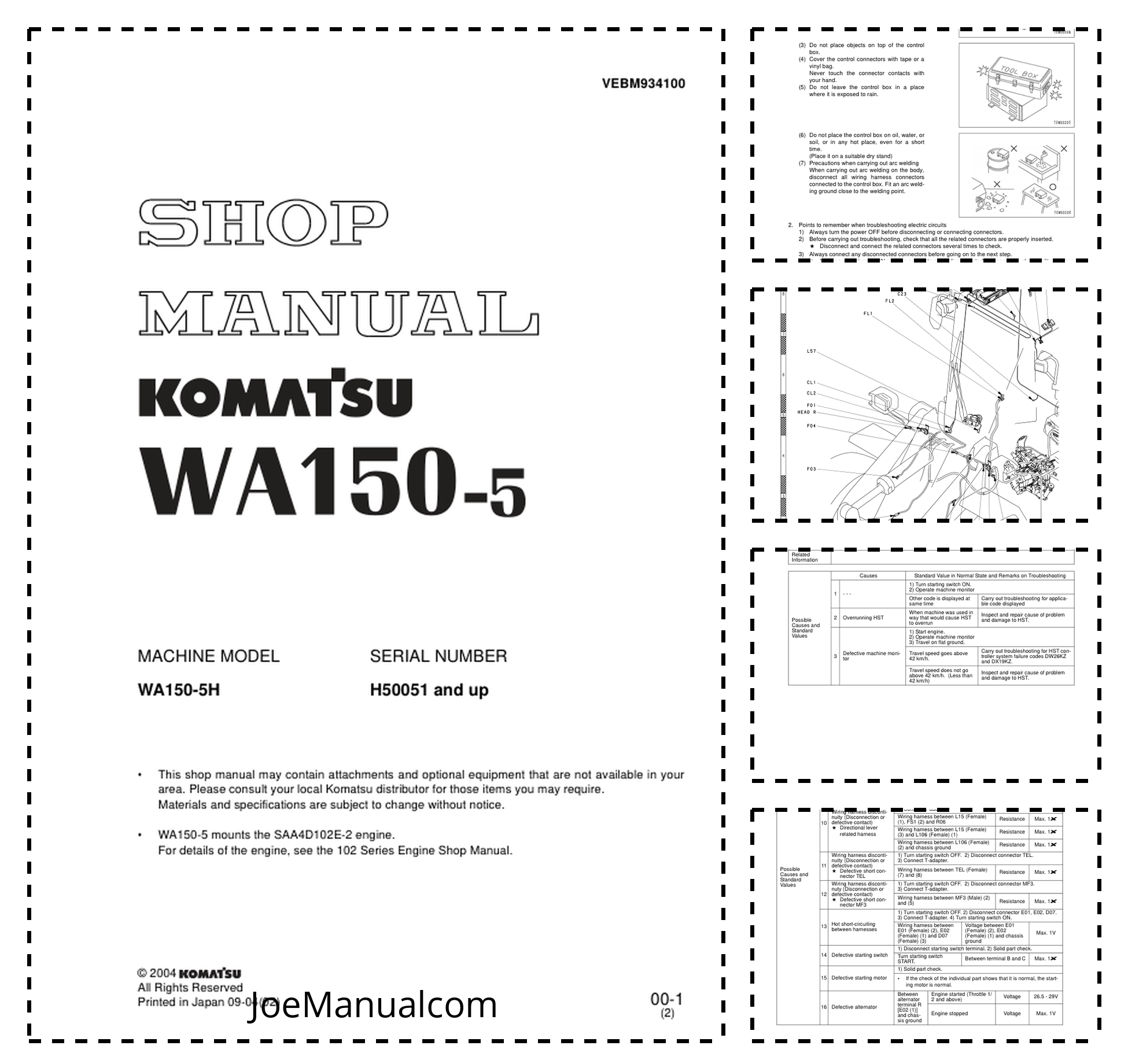 Komatsu WA150-5 Wheel Loader Workshop Manual SN 50051 and UP