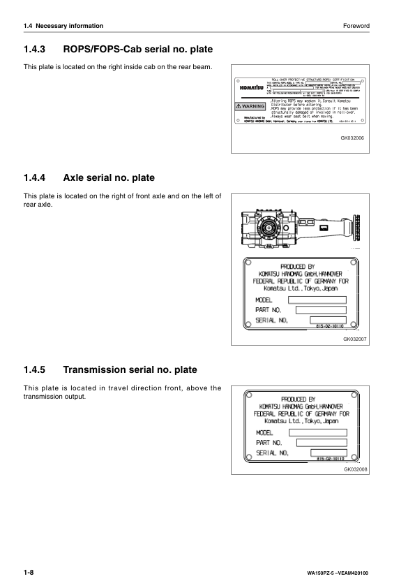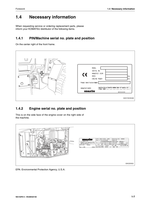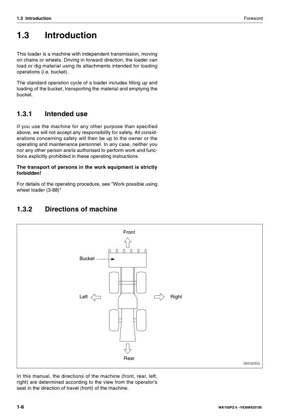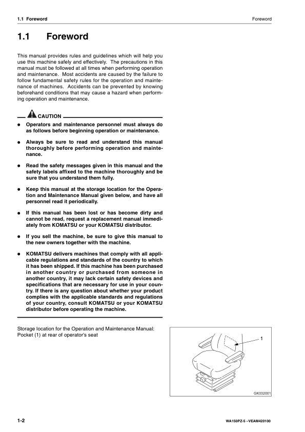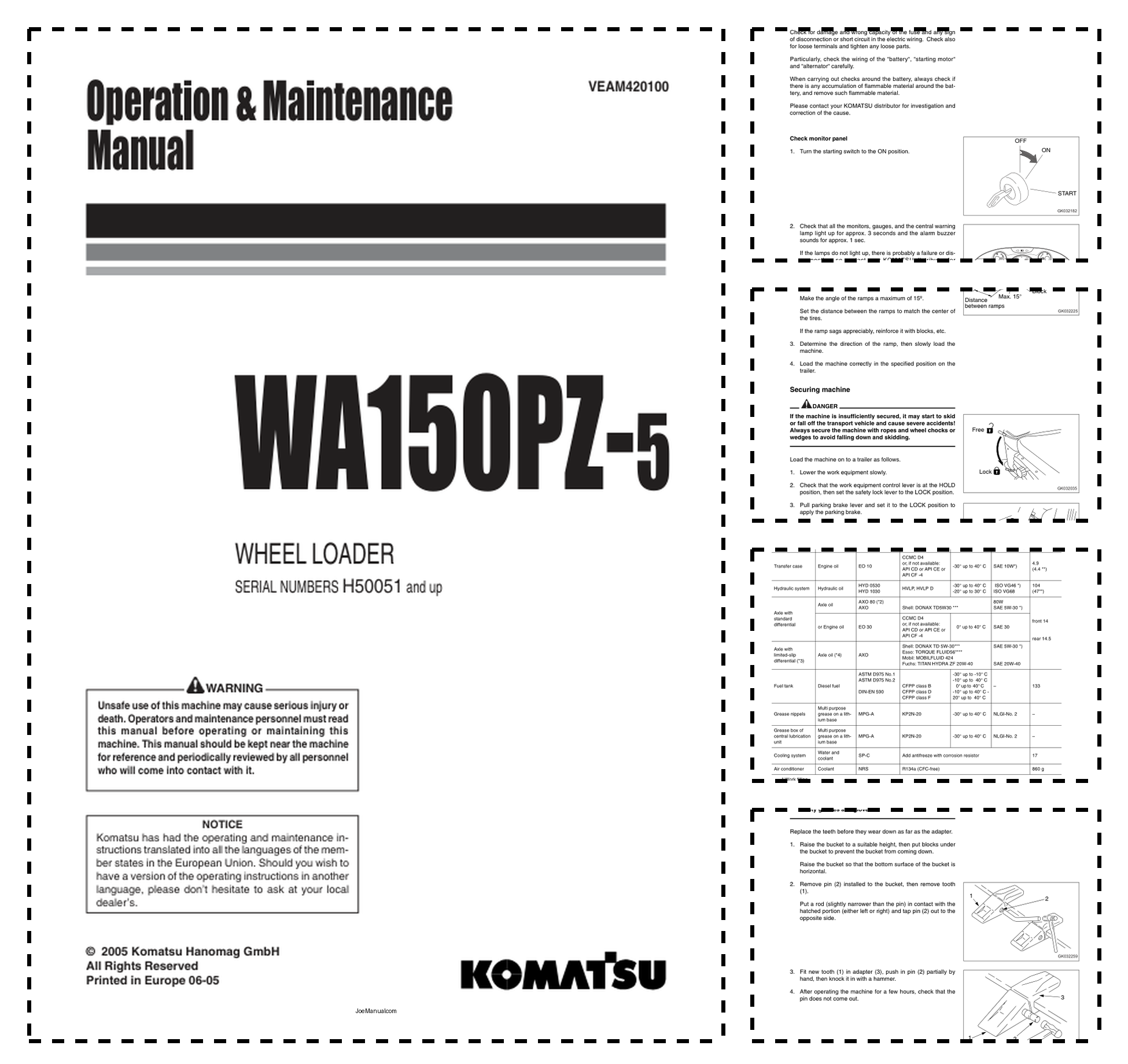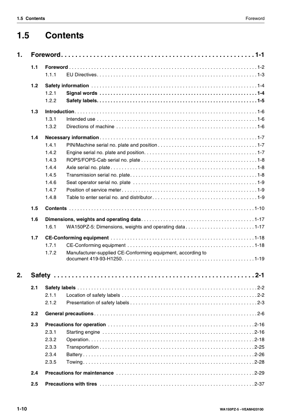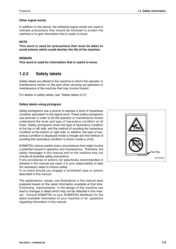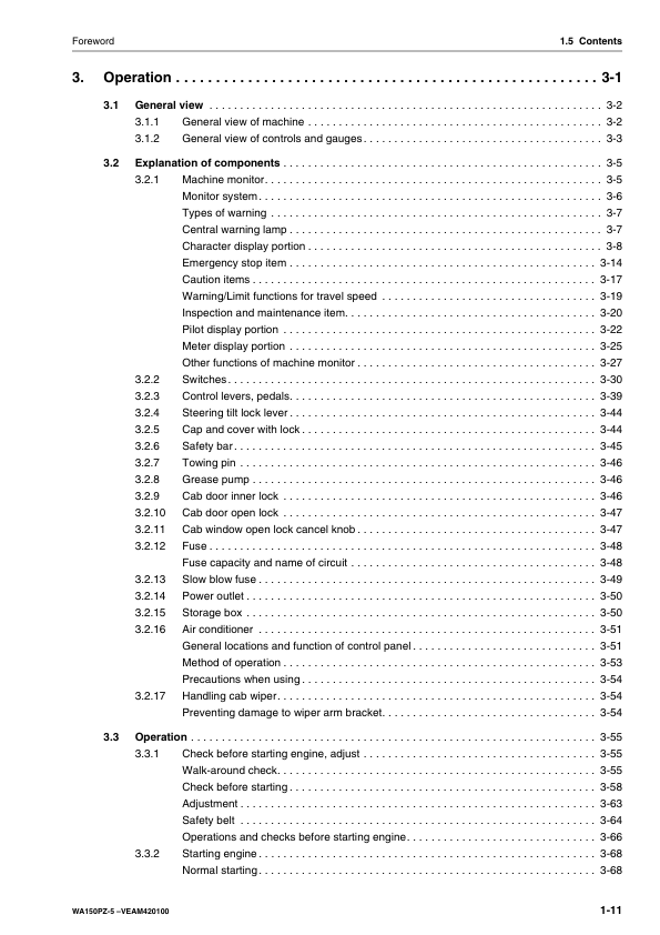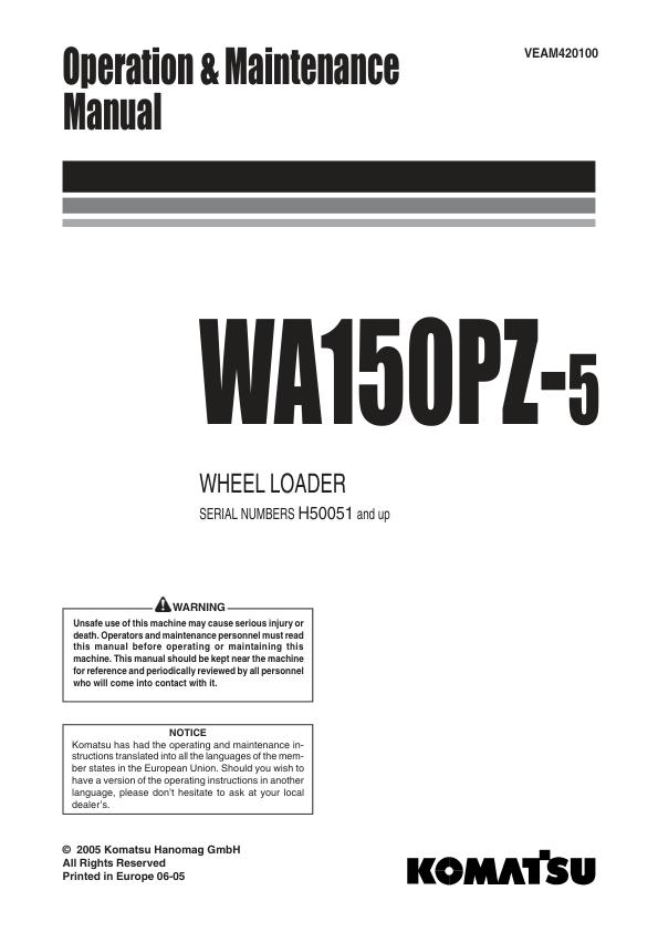 Komatsu WA150PZ-5 Wheel Loader Operation and Maintenance Manual SN H50051 and UP