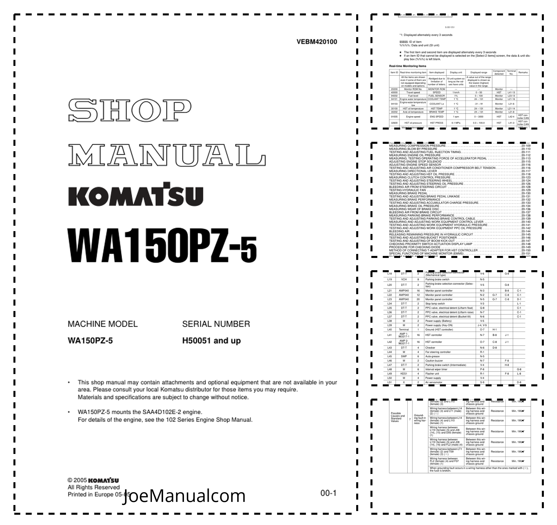Komatsu WA150PZ-5 Wheel Loader Workshop Manual SN H50051 and UP