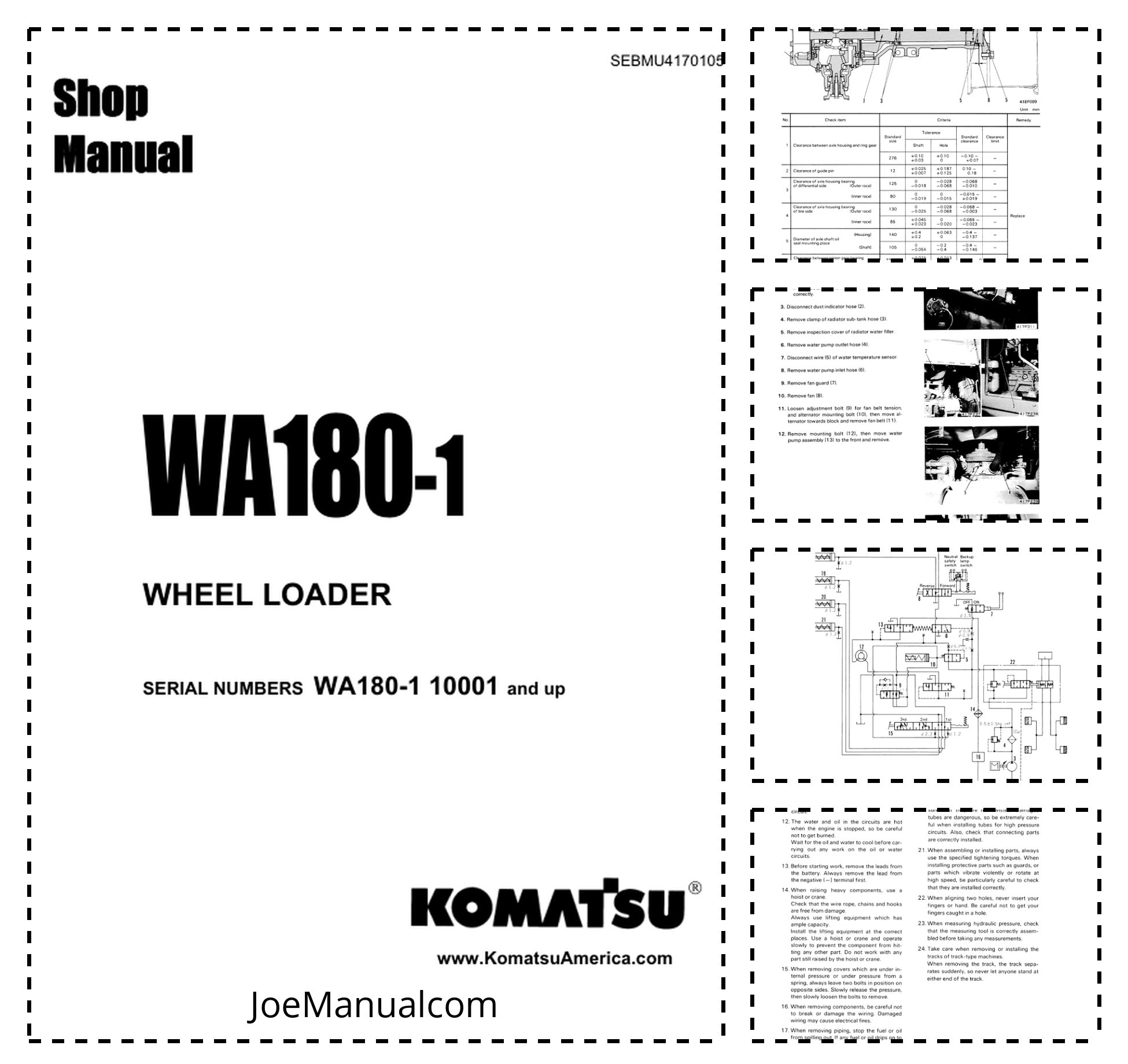 Komatsu WA180-1 Wheel Loader Workshop Manual SN 10001 and UP SEBMU4170105