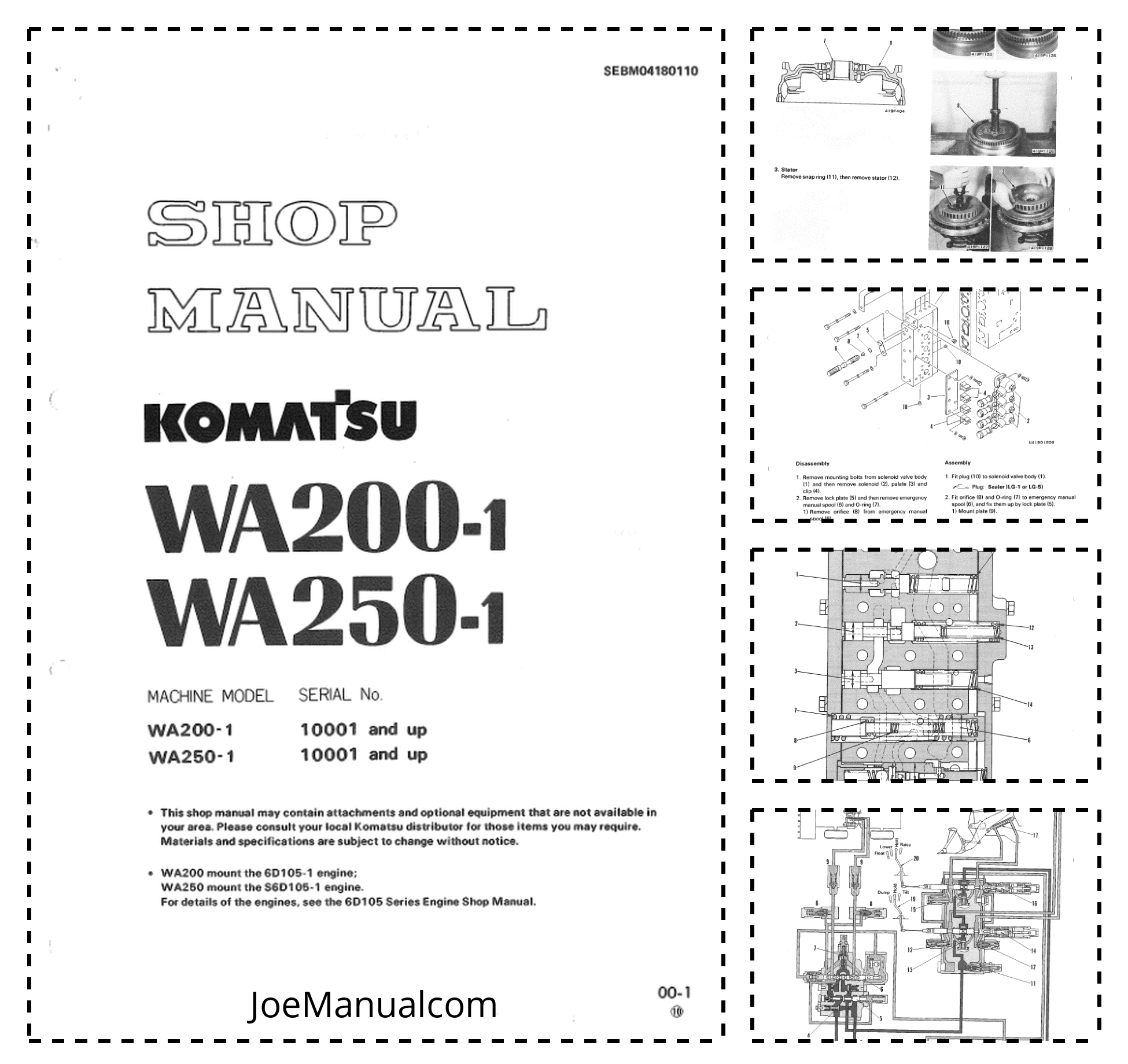 Komatsu WA200-1 WA250-1 Wheel Loader Workshop Manual SN 10001 and UP