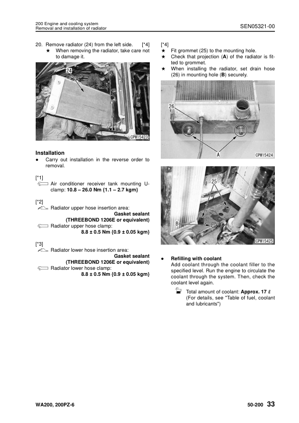 Komatsu WA200-6 WA200PZ-6 Wheel Loader Workshop Manual SN 70001 and UP SEN05282-03