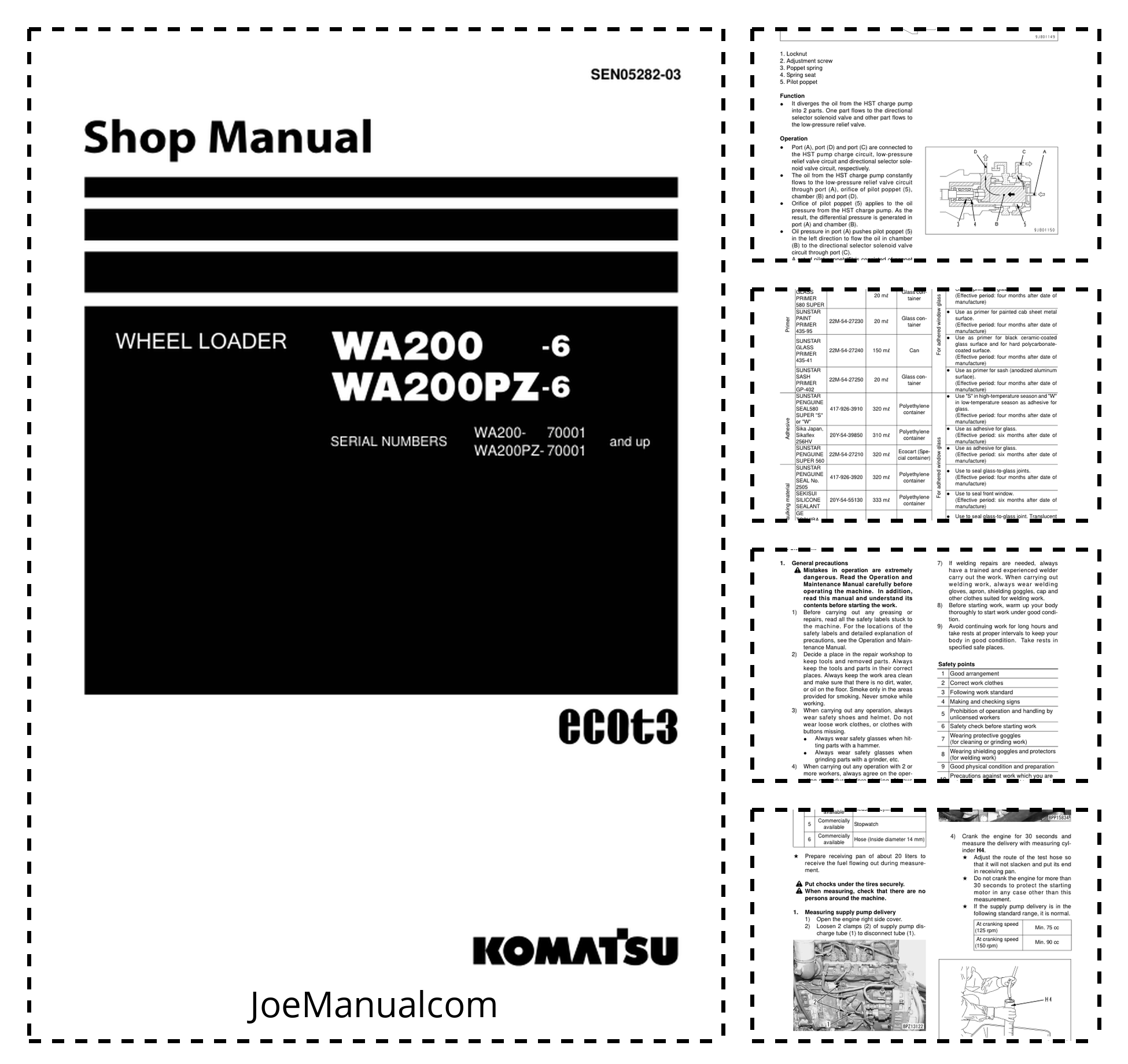 Komatsu WA200-6 WA200PZ-6 Wheel Loader Workshop Manual SN 70001 and UP SEN05282-03