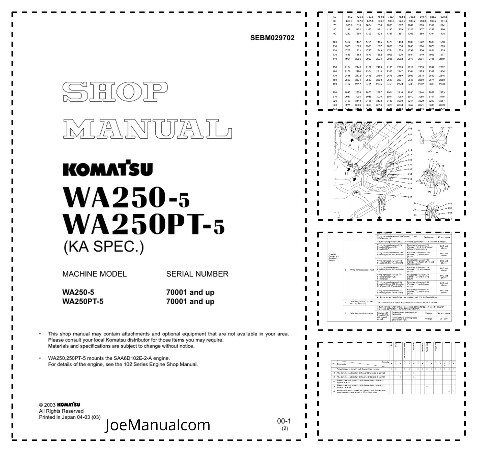 Komatsu WA250-5 WA250PT-5 Wheel Loader Workshop Manual SN 70001 and UP