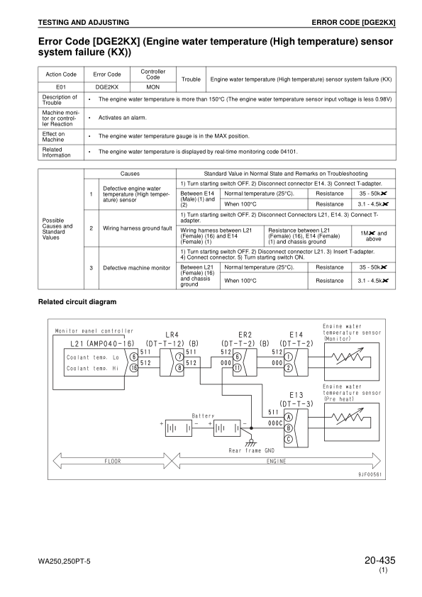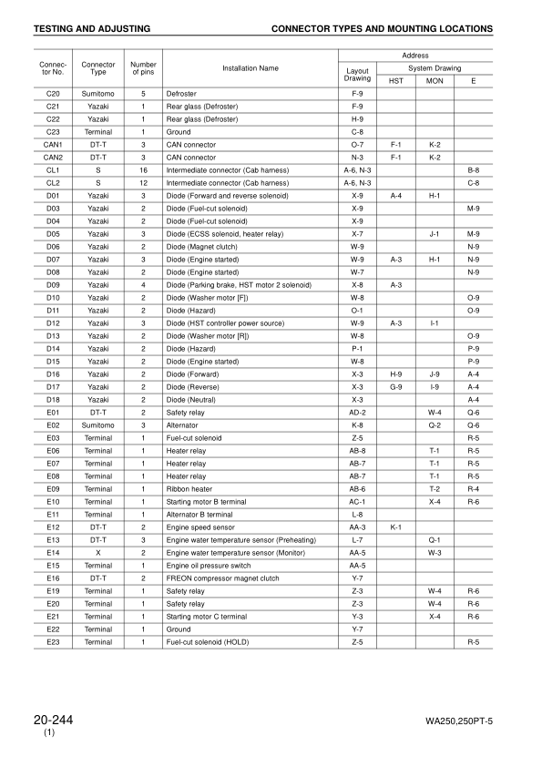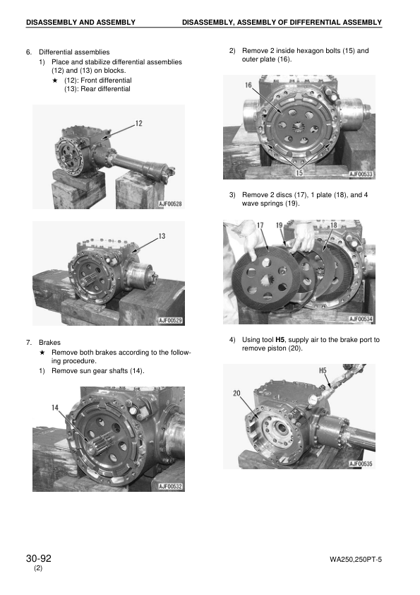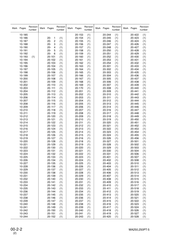 Komatsu WA250-5H WA250PT-5H Wheel Loader Workshop Manual SN 50051 60051 and UP
