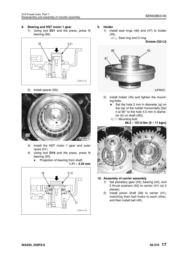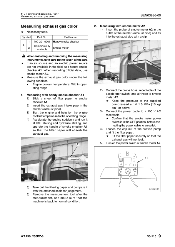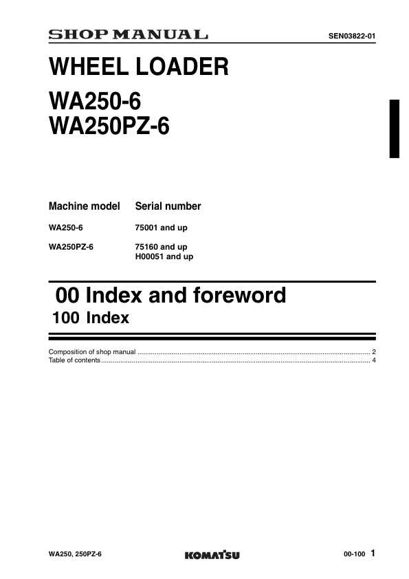 Komatsu WA250-6 WA250PZ-6 Wheel Loader Workshop Manual SN 75001 75160 H00051 and UP