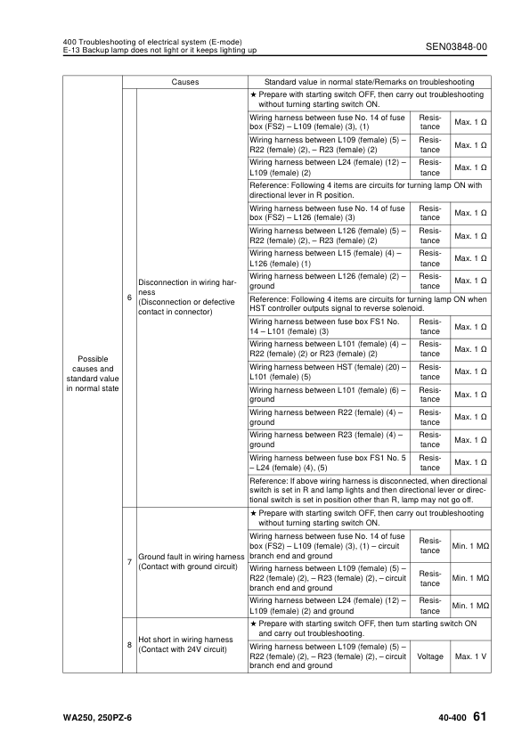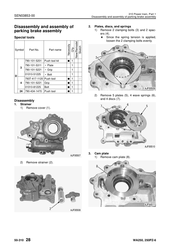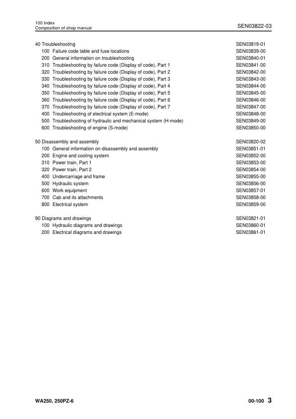 Komatsu WA250-6 WA250PZ-6 Wheel Loader Workshop Manual SN 75001 and UP SEN03813-03