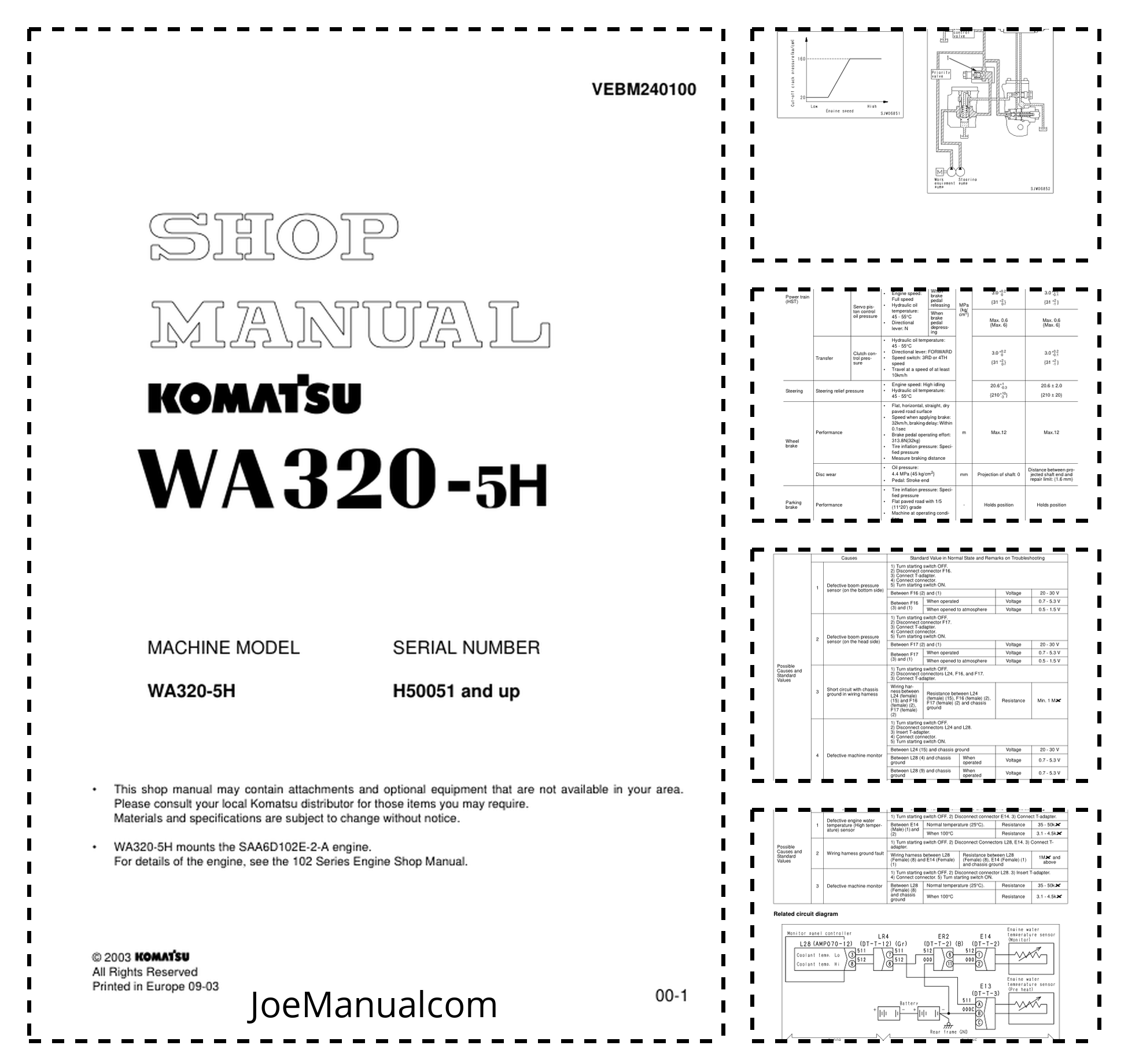 Komatsu WA320-5H Wheel Loader Workshop Manual SN H50051 and UP