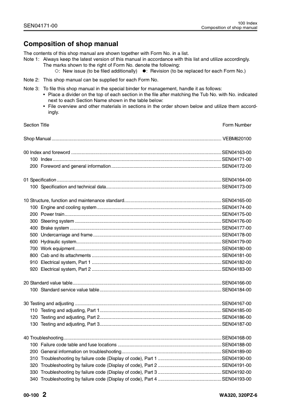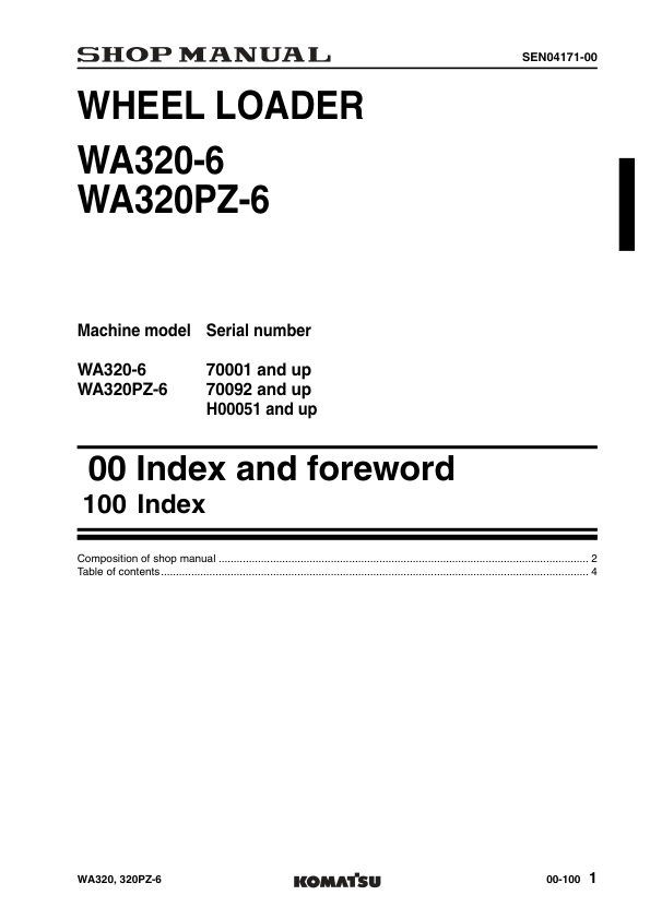 Komatsu WA320-6 WA320PZ-6 Wheel Loader Workshop Manual SN 70001 700092 H00051 and UP