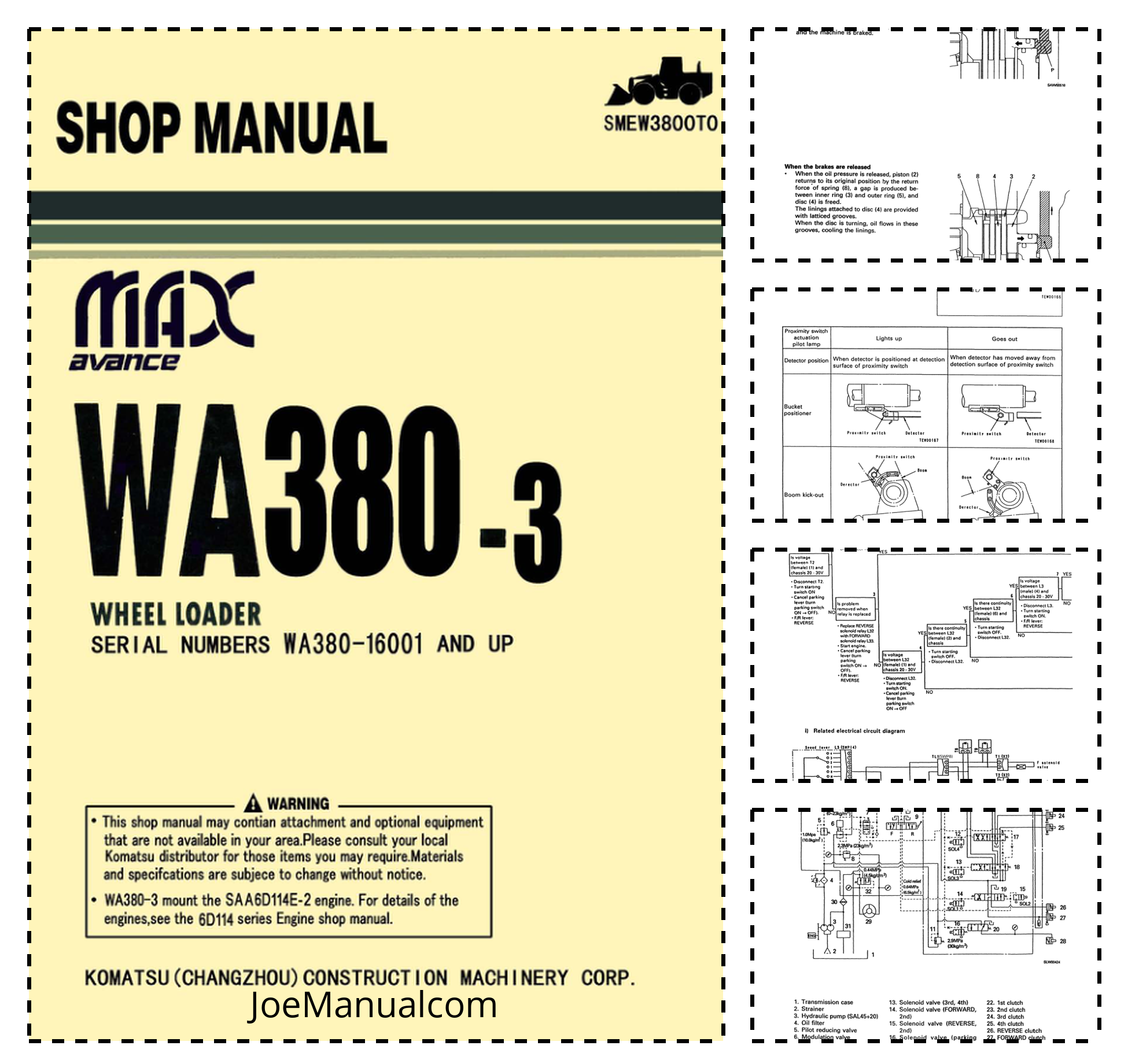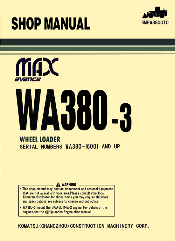 Komatsu WA380-3 Avance MAX Wheel Loader Workshop Manual SN 16001 and UP