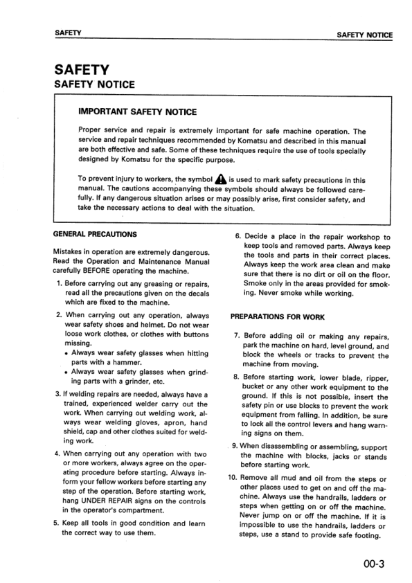 Komatsu WA380-3 Avance Wheel Loader Workshop Manual SN 50001 and UP