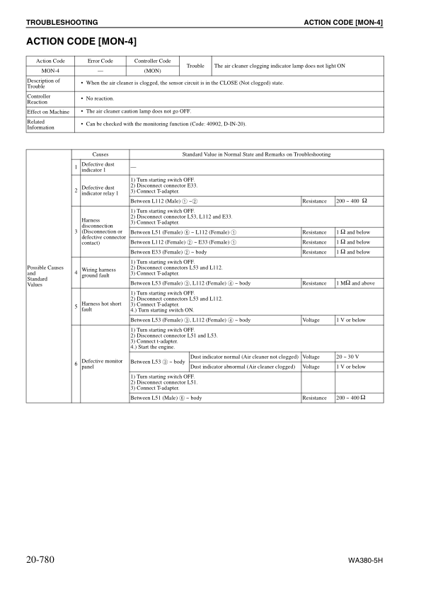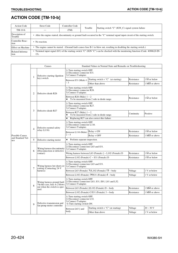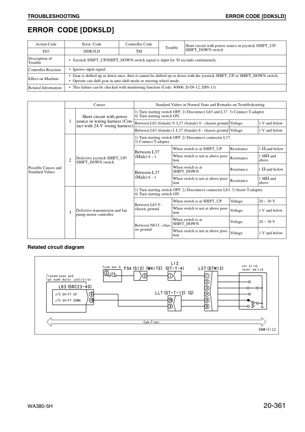 Komatsu WA380-5H Wheel Loader Service Manual WA380H5051