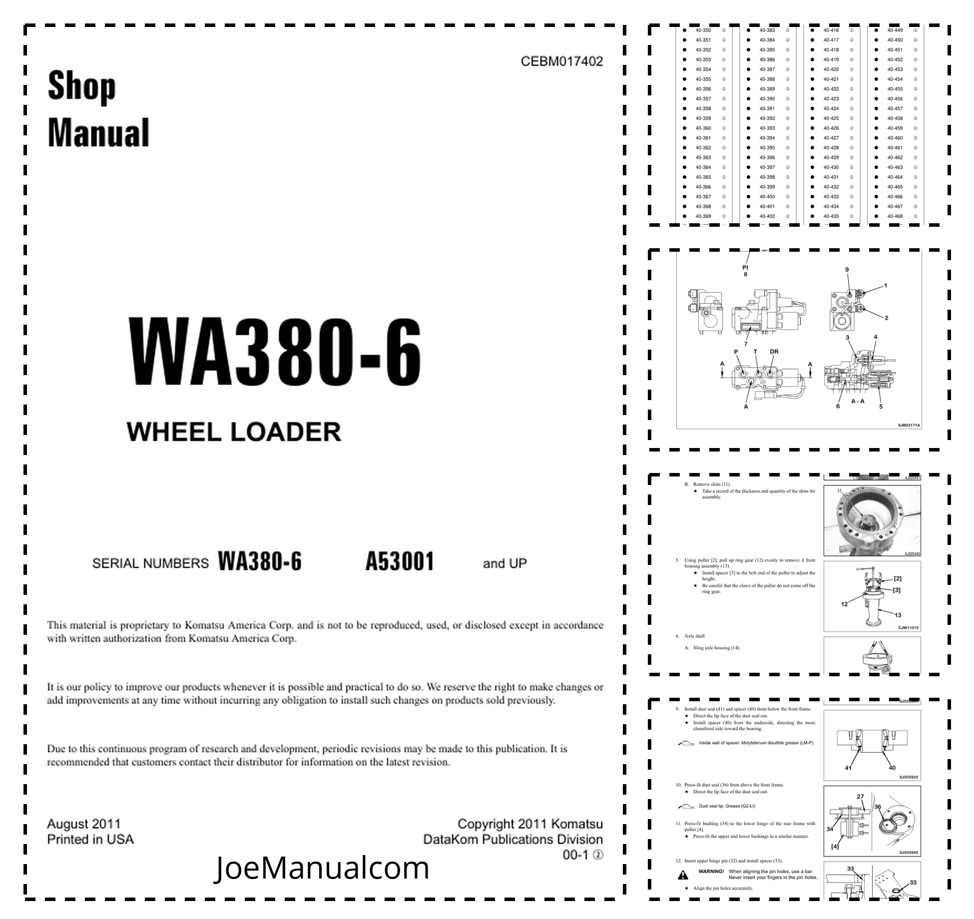 Komatsu WA380-6 Wheel Loader Workshop Manual SN A53001 and UP