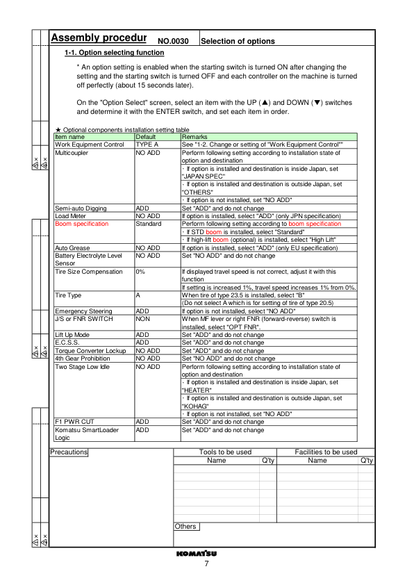Komatsu WA380-7 Wheel Loader Field Assembly Instruction SN 10001 and UP