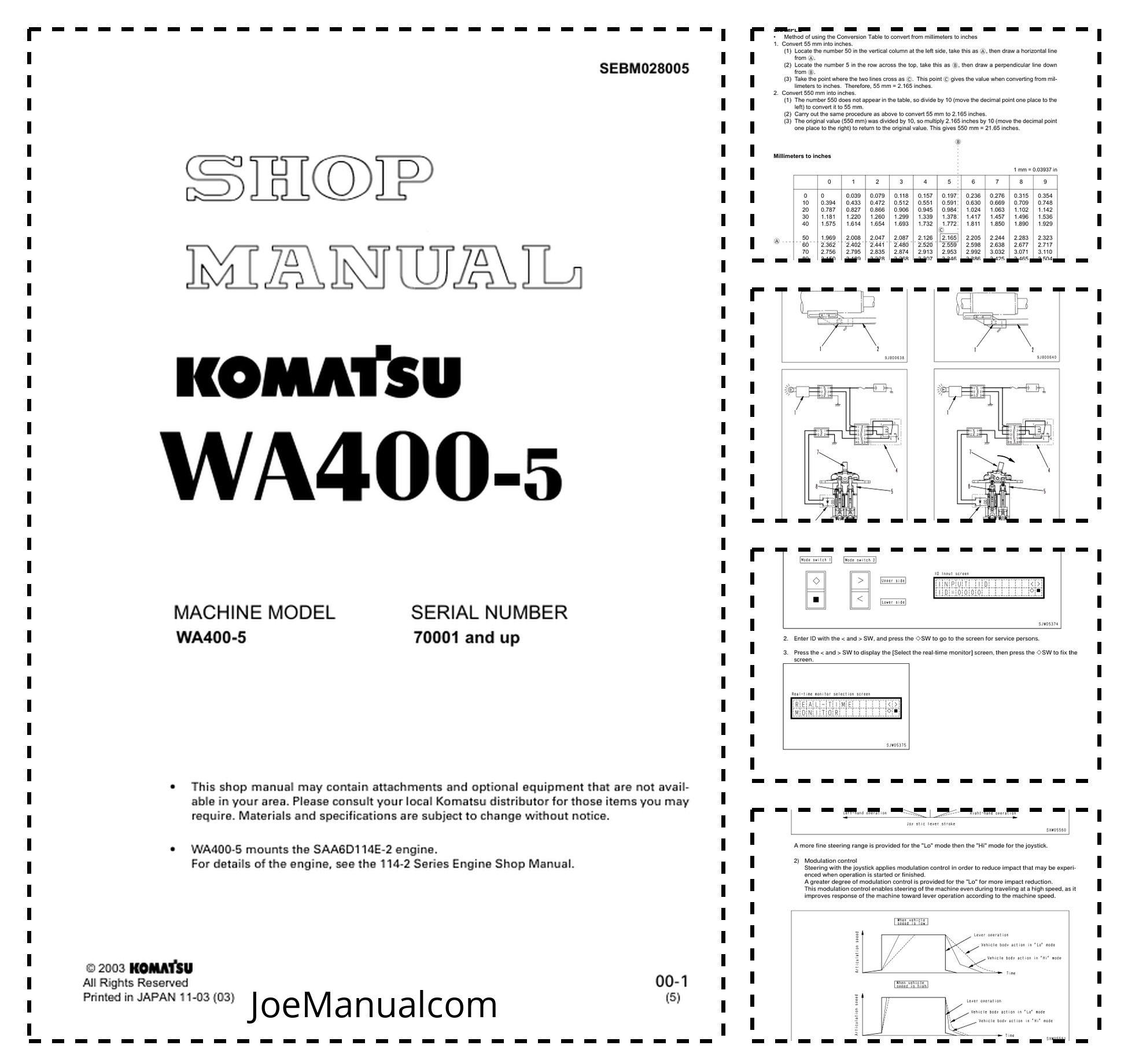 Komatsu WA400-5 Wheel Loader Workshop Manual SN 70001 and UP SEBM028005