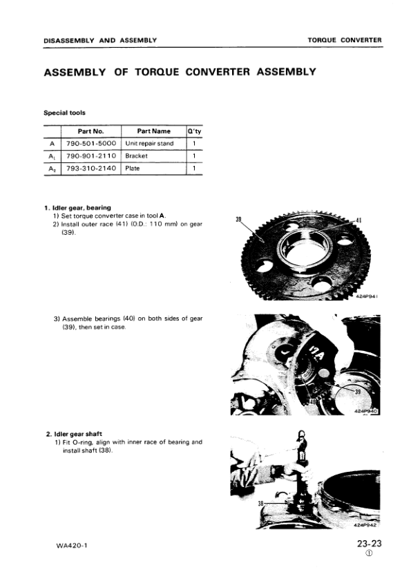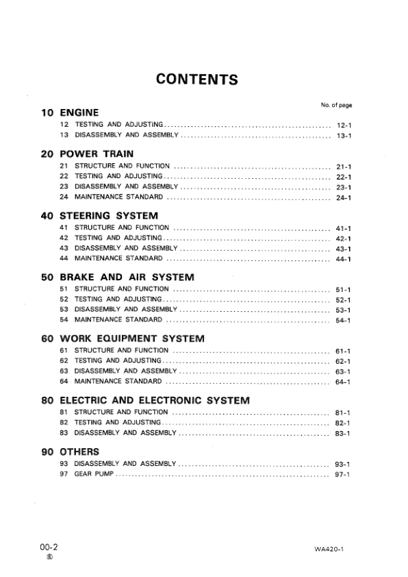 Komatsu WA420-1 Wheel Loader Workshop Manual SN 10001 and UP