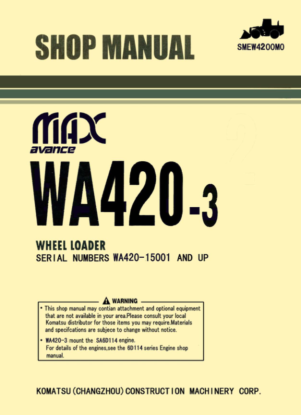 Komatsu WA420-3 Avance MAX Wheel Loader Workshop Manual SN 15001 and UP