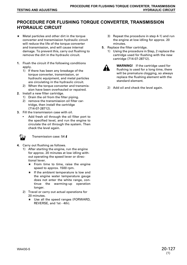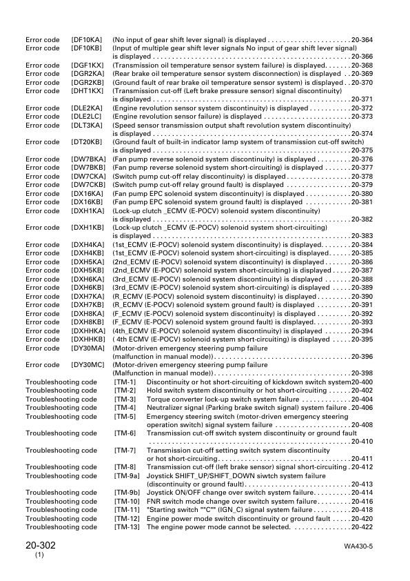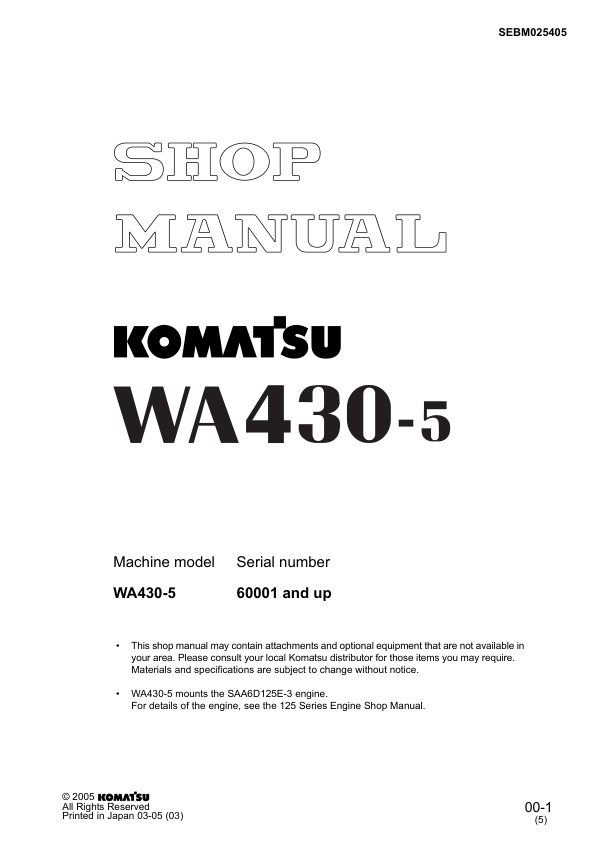 Komatsu WA430-5 Wheel Loader Workshop Manual SN 6001 and UP