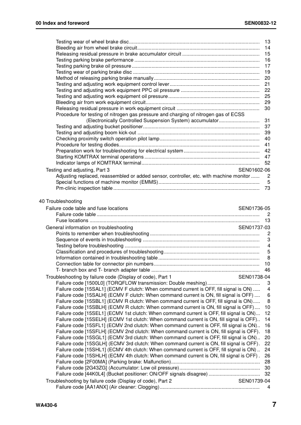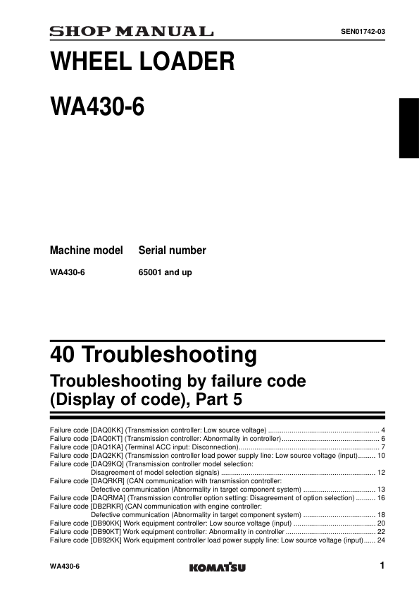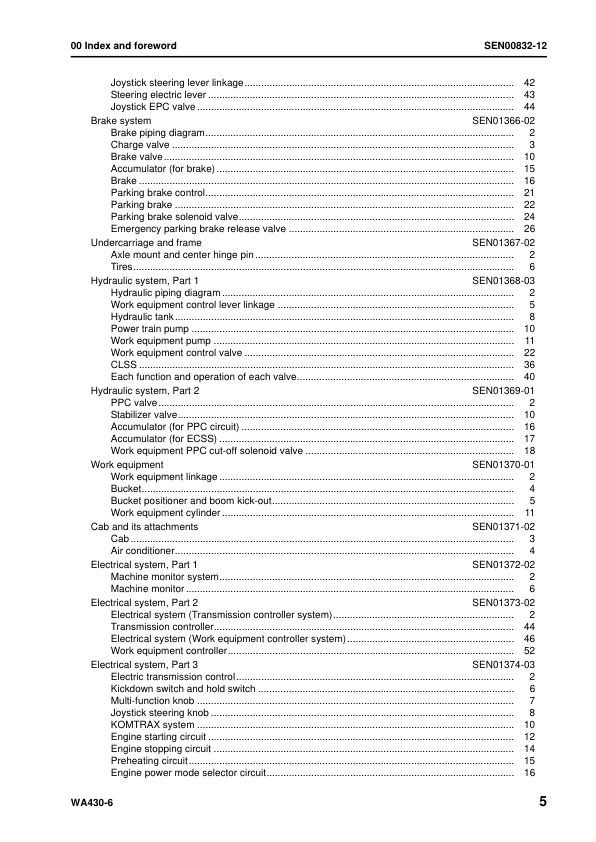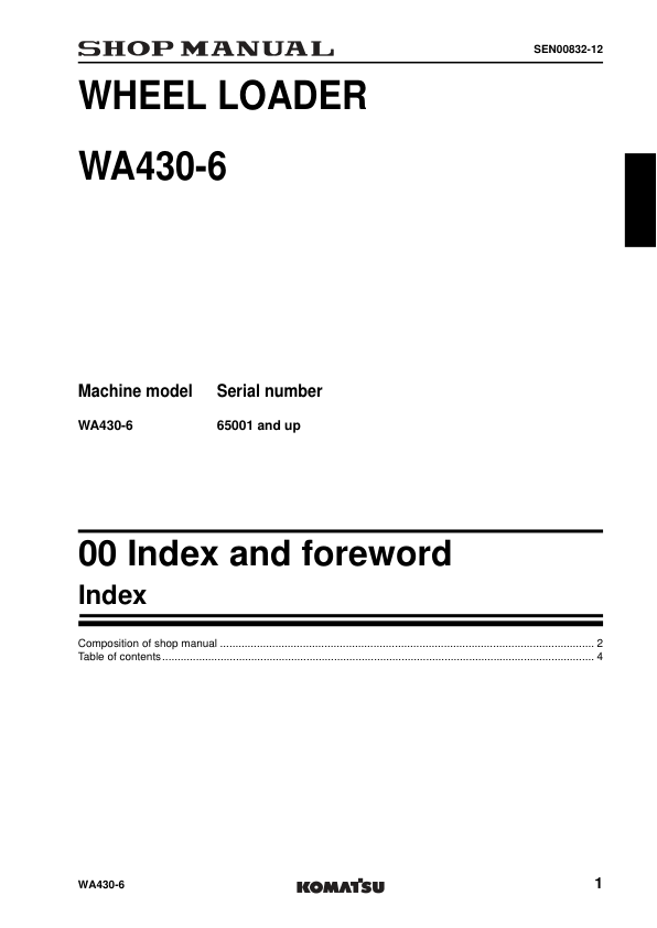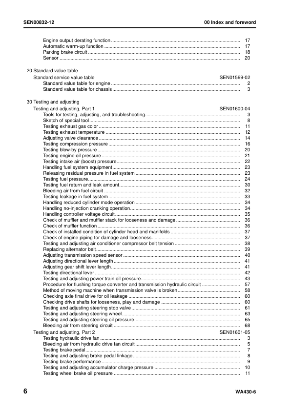Komatsu WA430-6 Wheel Loader Workshop Manual SN 65001 and UP