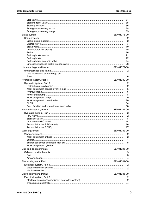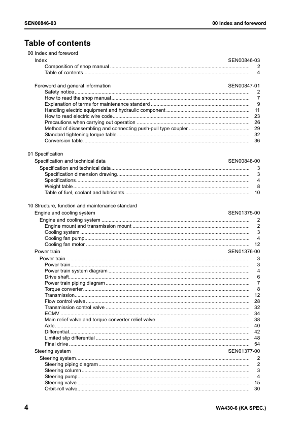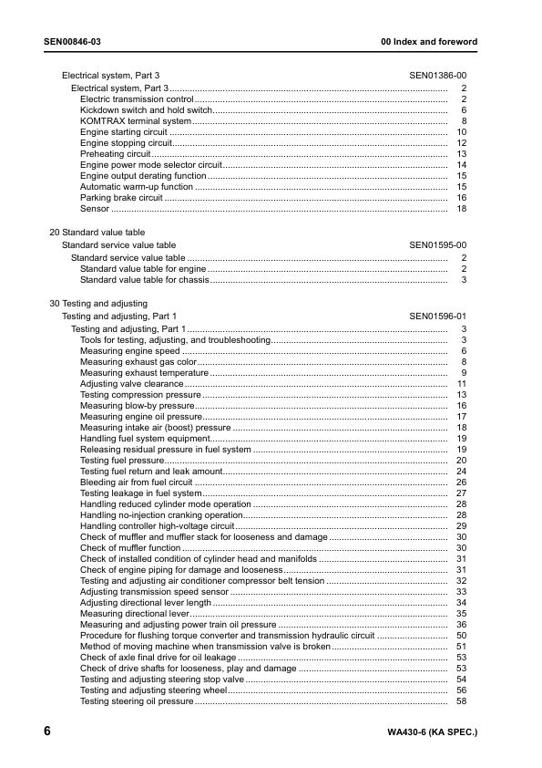 Komatsu WA430-6 Wheel Loader Workshop Manual SN 65001 and UP
