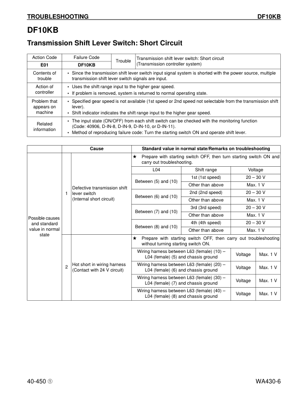 Komatsu WA430-6 Wheel Loader Workshop Manual SN A41001 and UP