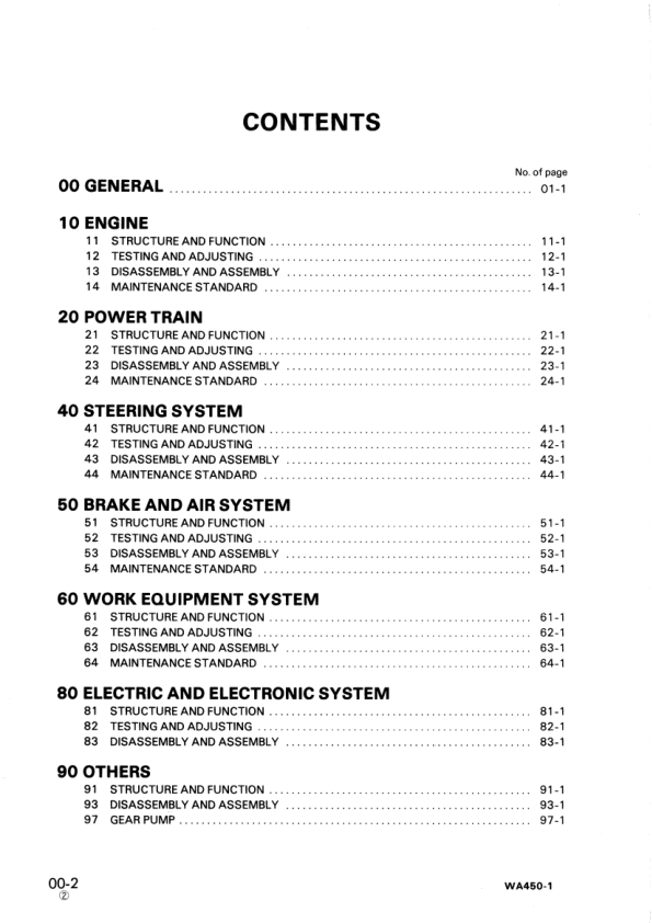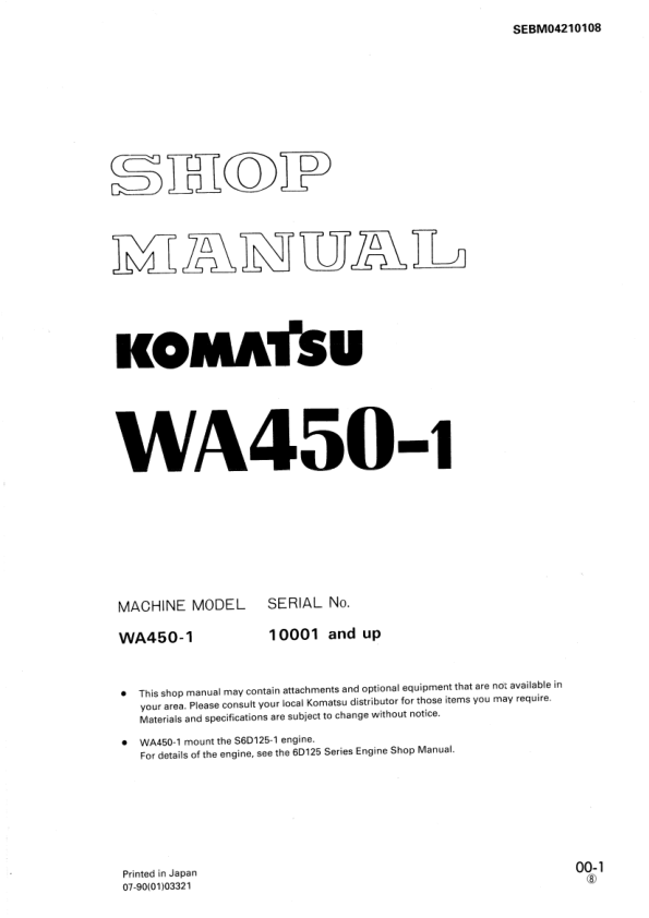 Komatsu WA450-1 Wheel Loader Workshop Manual SN 10001 and UP