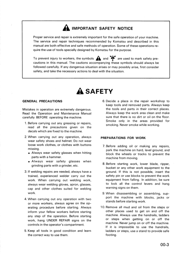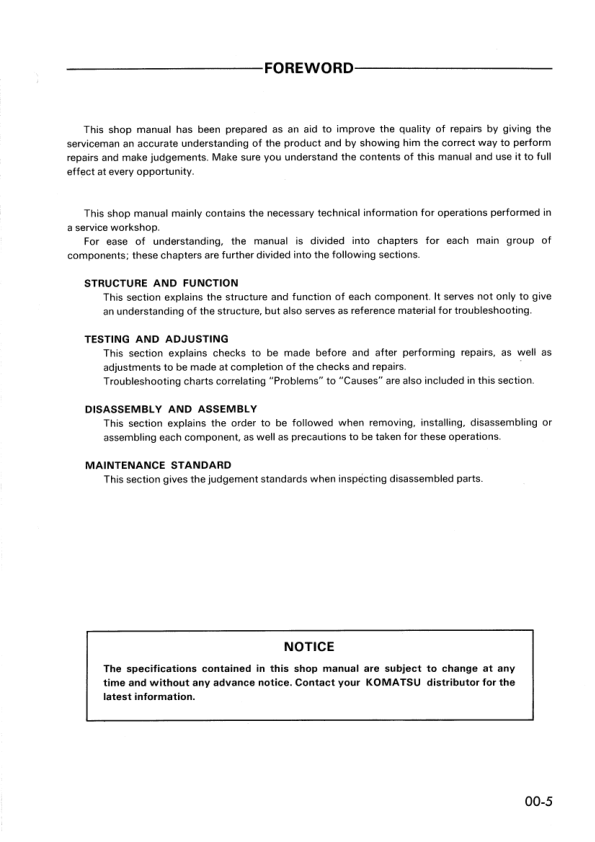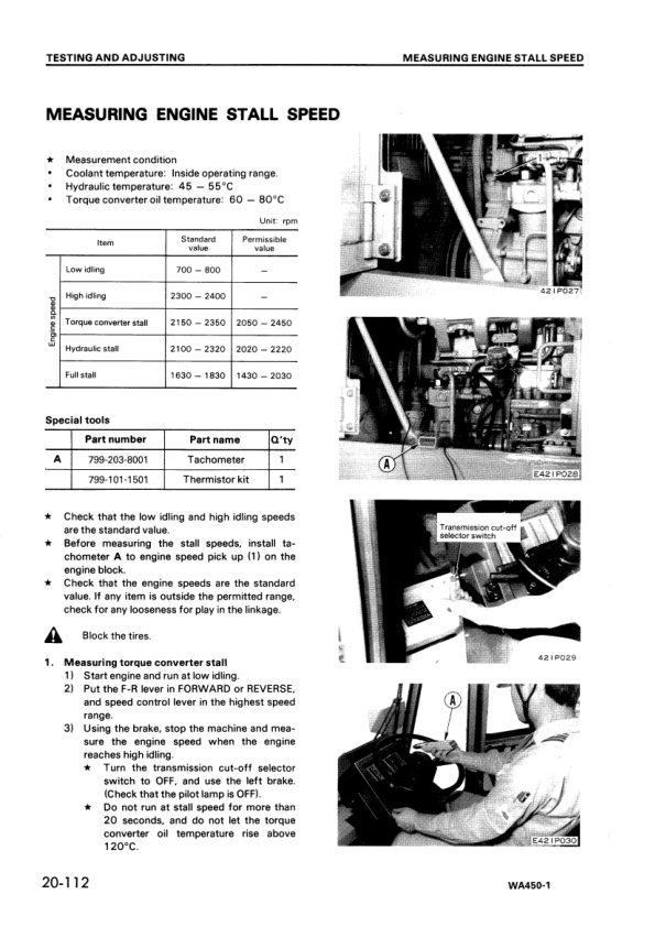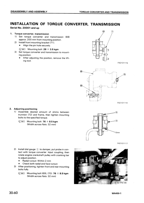 Komatsu WA450-1 Wheel Loader Workshop Manual SN 20001 and UP
