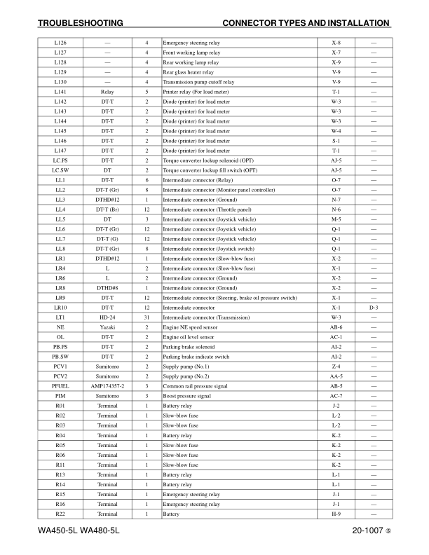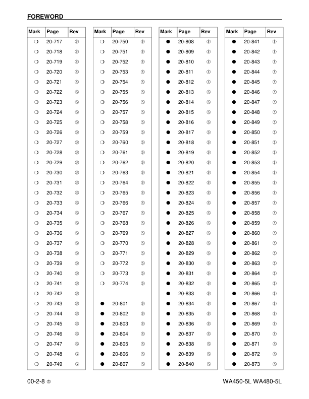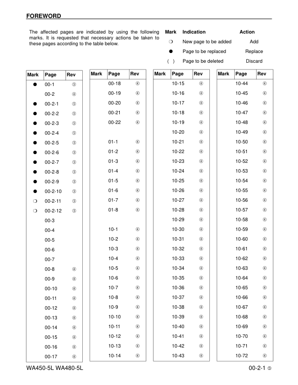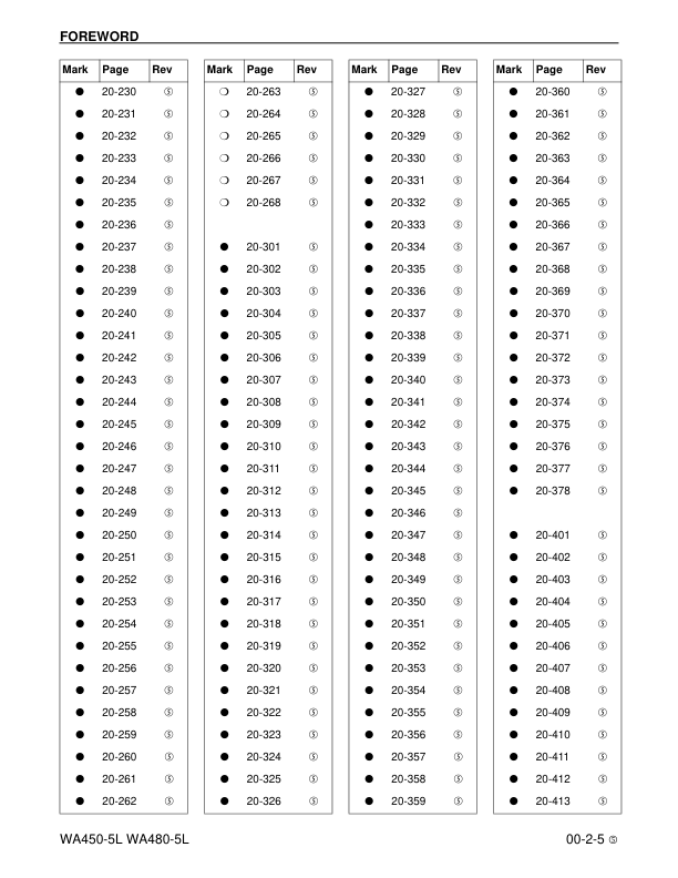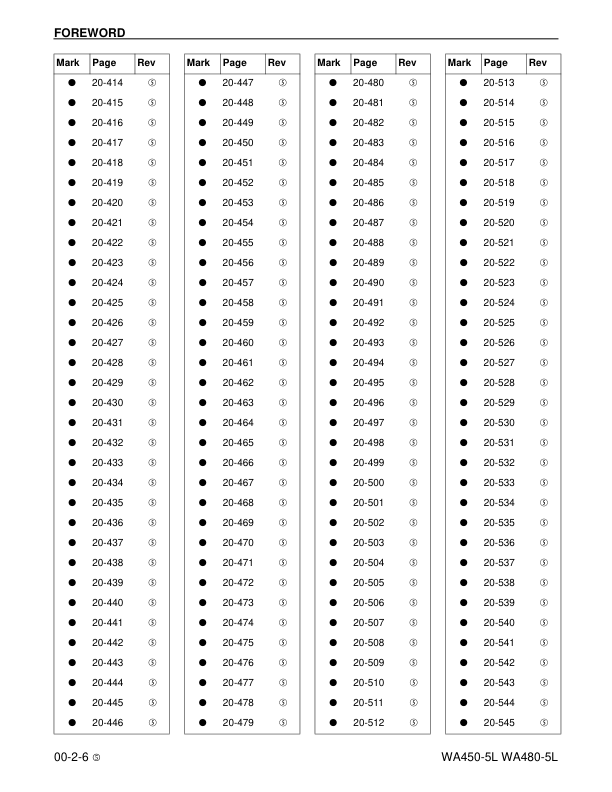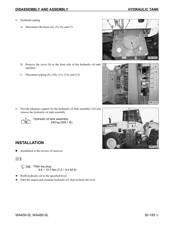 Komatsu WA450-5L WA480-5L Wheel Loader Workshop Manual SN A36001 A37001 and UP