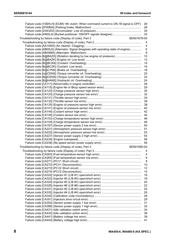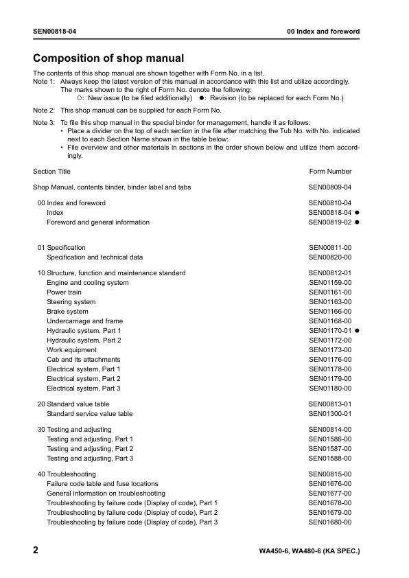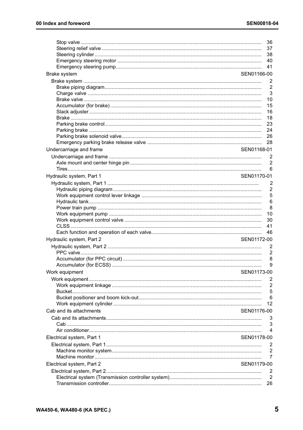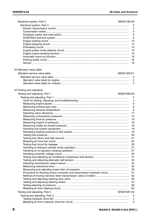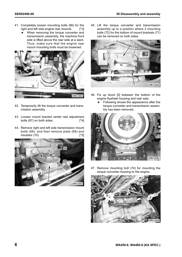 Komatsu WA450-6 WA480-6 Galeo Wheel Loader Workshop Manual SN 66001 85001 and UP
