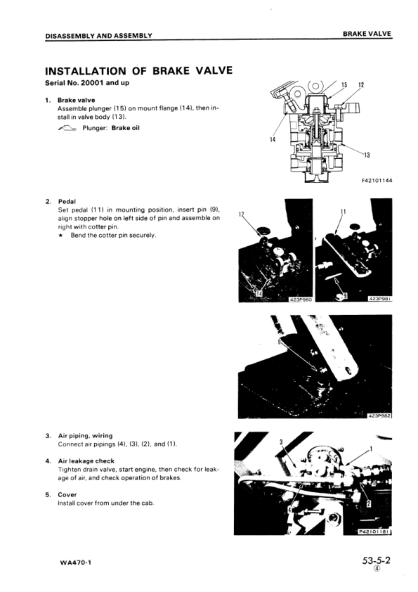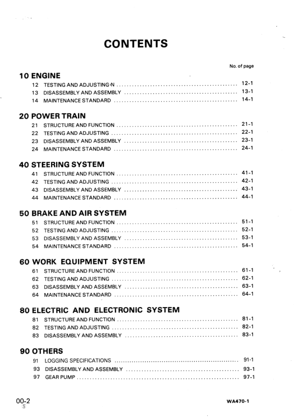 Komatsu WA470-1 Wheel Loader Workshop Manual SN 10001 and UP