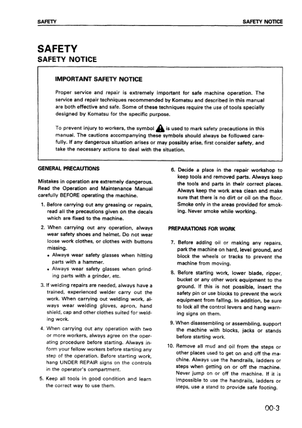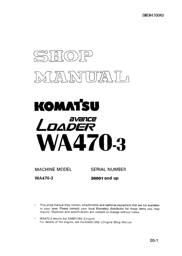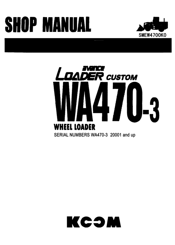 Komatsu WA470-3 Avance Custom Wheel Loader Workshop Manual SN 20001 and UP