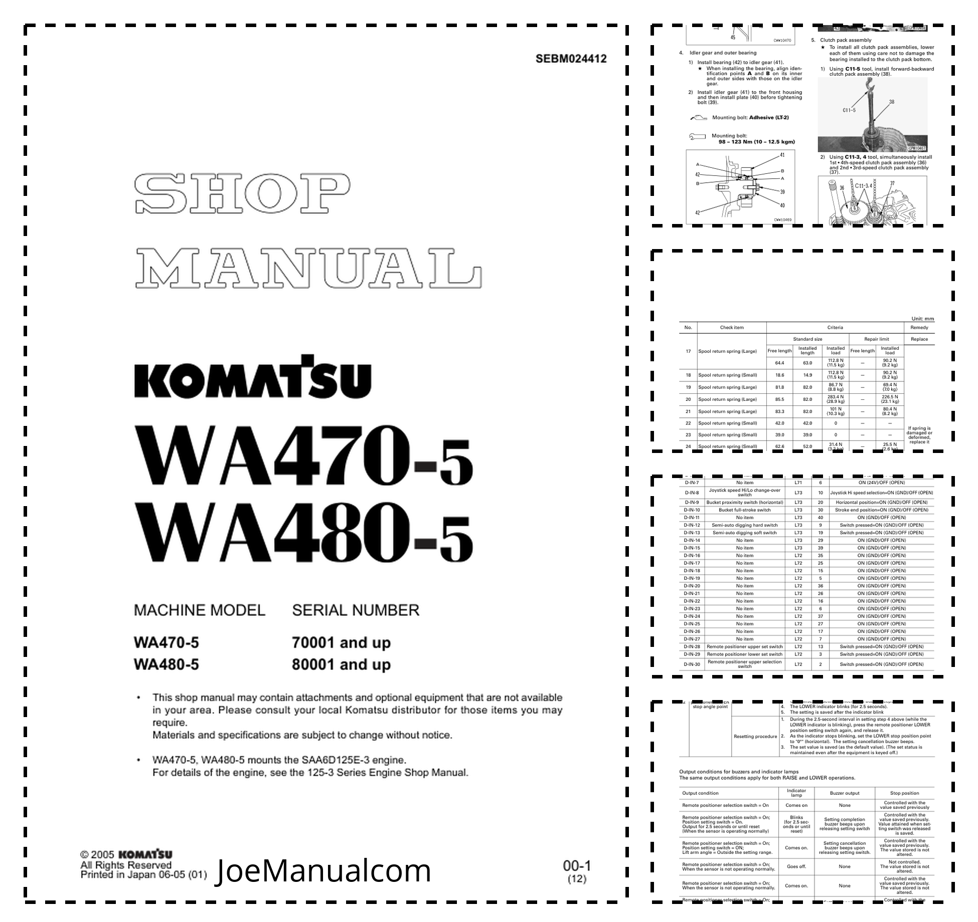 Komatsu WA470-5 WA480-5 Wheel Loader Workshop Manual SN 70001 80001 and UP SEBM024412