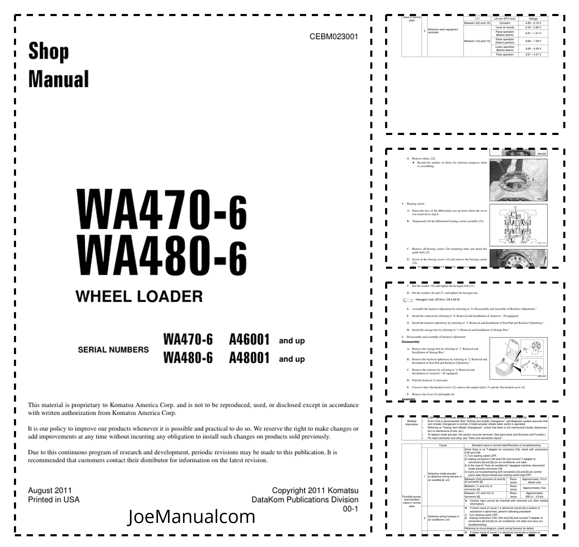 Komatsu WA470-6 WA480-6 Wheel Loader Workshop Manual SN A46001 A48001 and UP