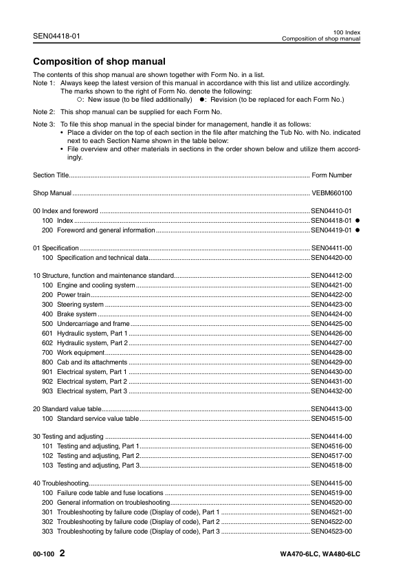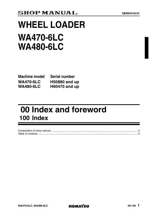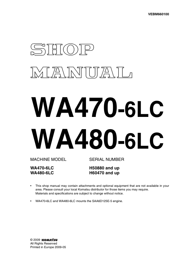 Komatsu WA470-6LC WA480-6LC Wheel Loader Workshop Manual SN H50880 H60470 and UP