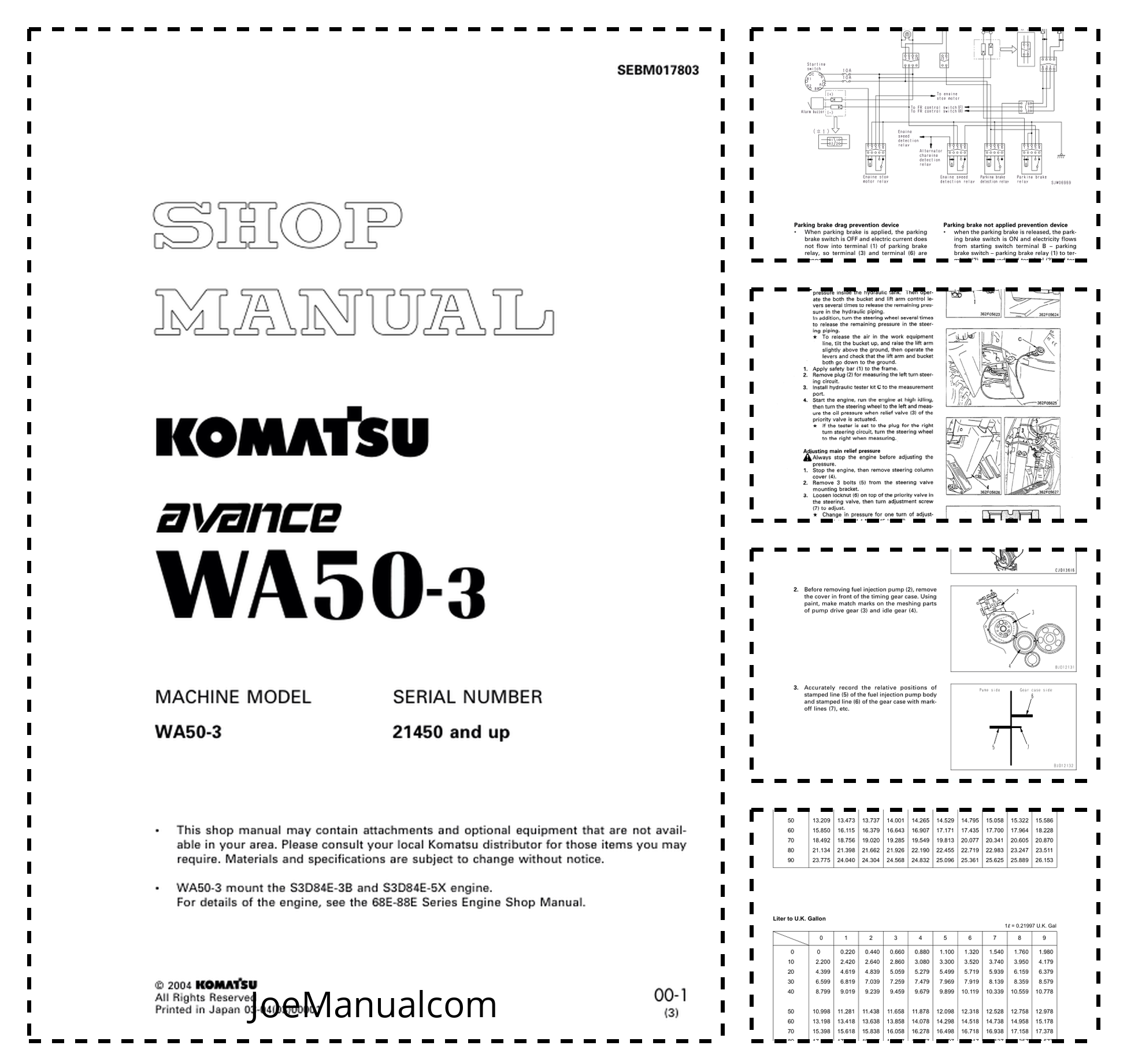 Komatsu WA50-3 Avance Wheel Loader Workshop Manual SN 21450 and UP