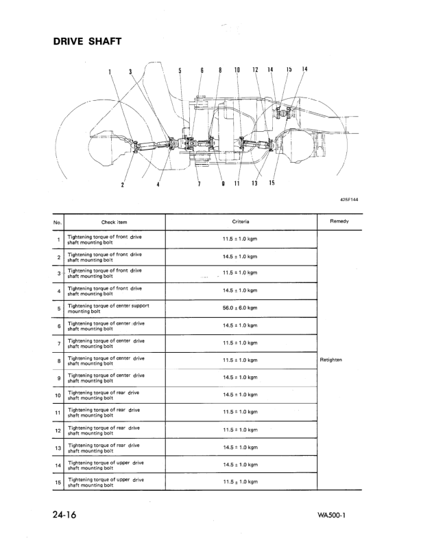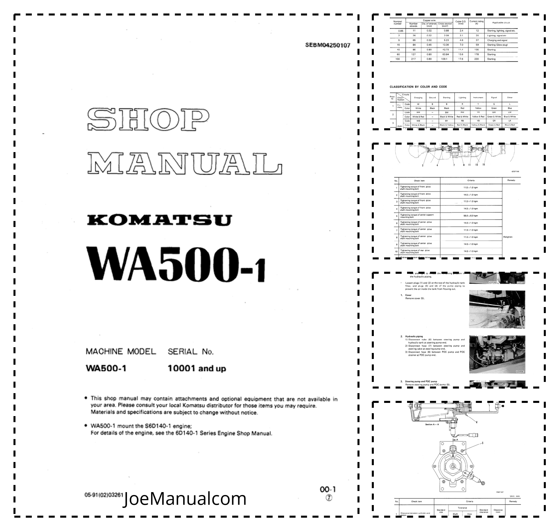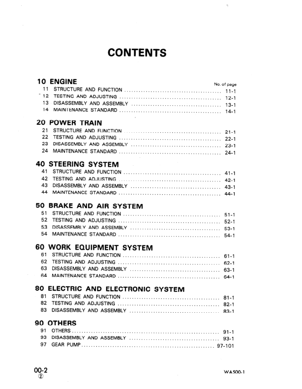 Komatsu WA500-1 Wheel Loader Workshop Manual SN 10001 and UP