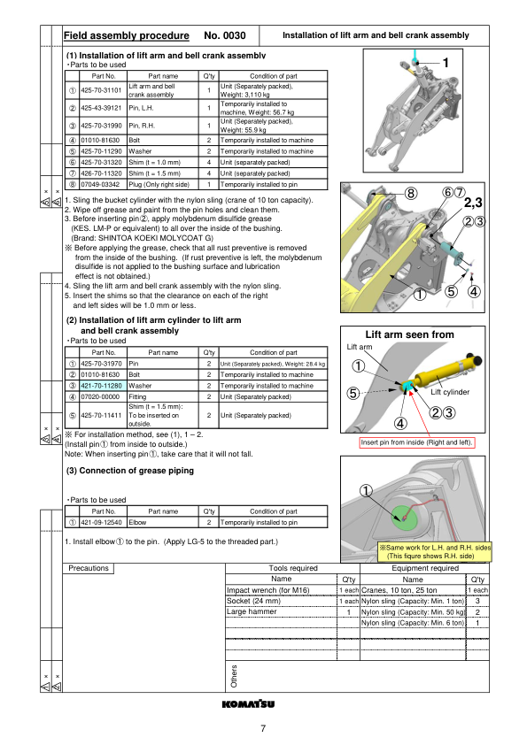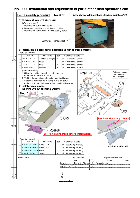 Komatsu WA500-6 Wheel Loader Field Assembly Instruction SN 55001 and UP