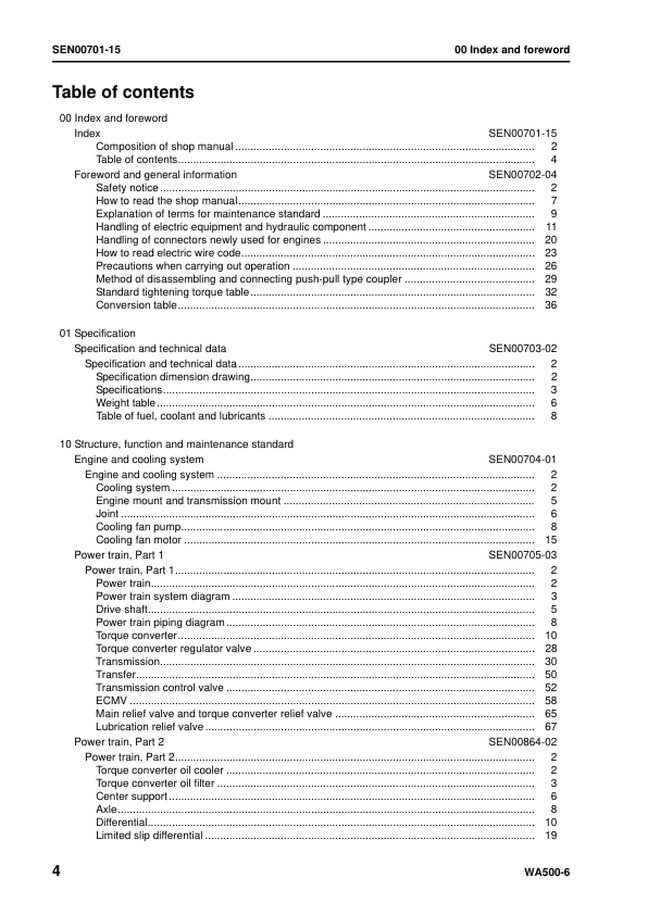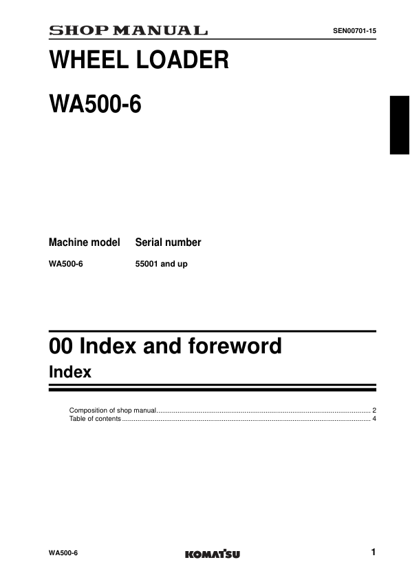 Komatsu WA500-6 Wheel Loader Workshop Manual SN 55001 and UP