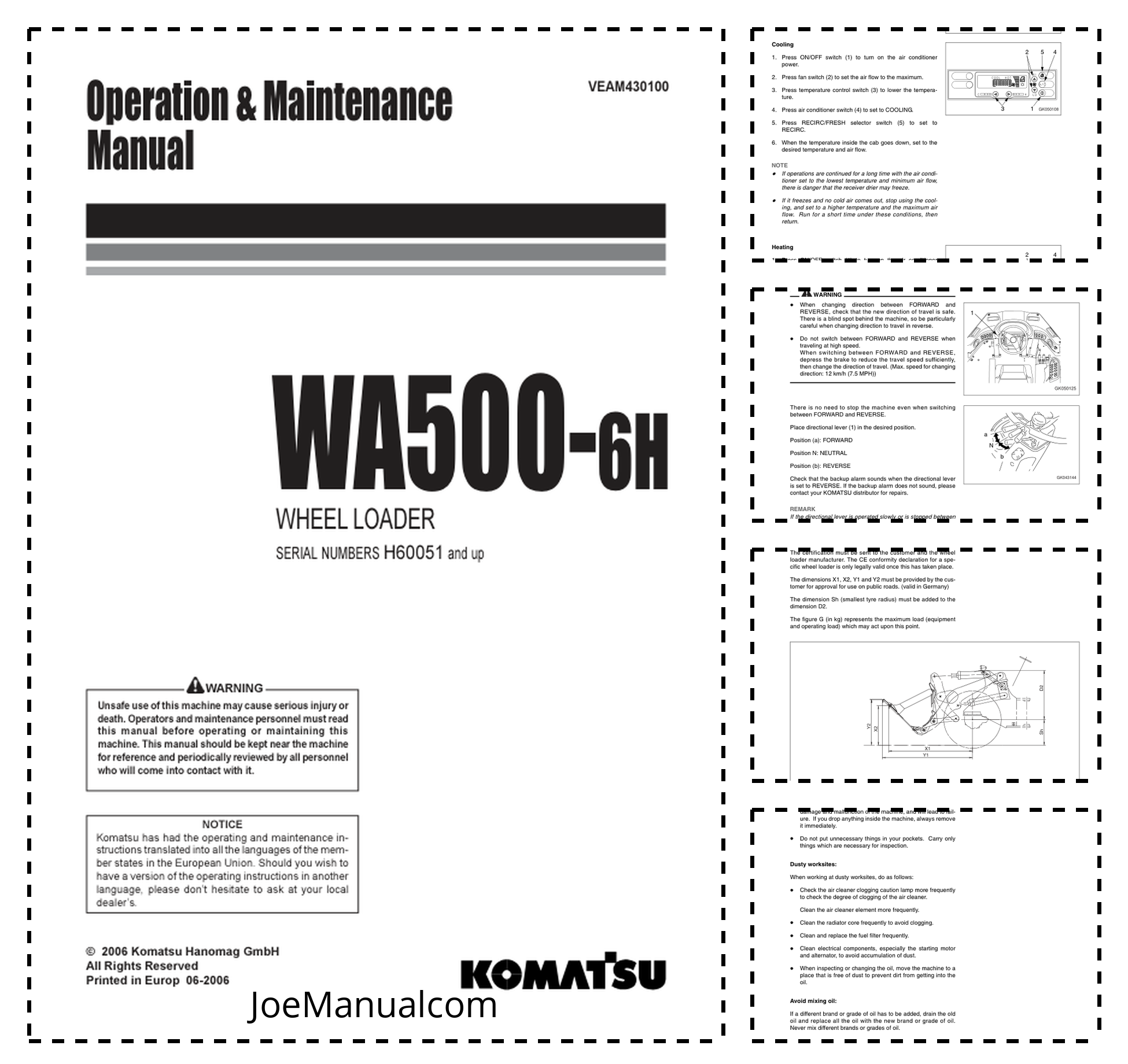 Komatsu WA500-6H Wheel Loader Operation and Maintenance Manual SN H60051 and UP