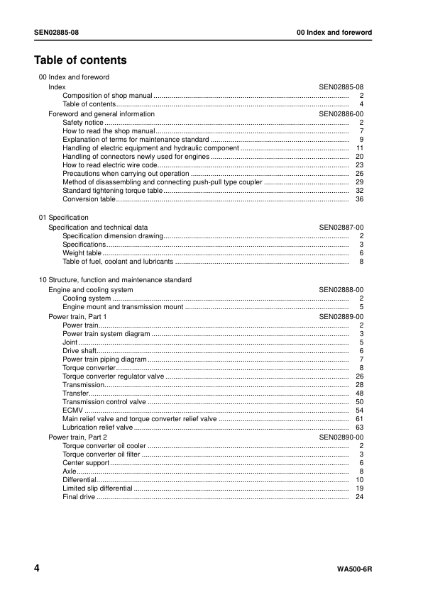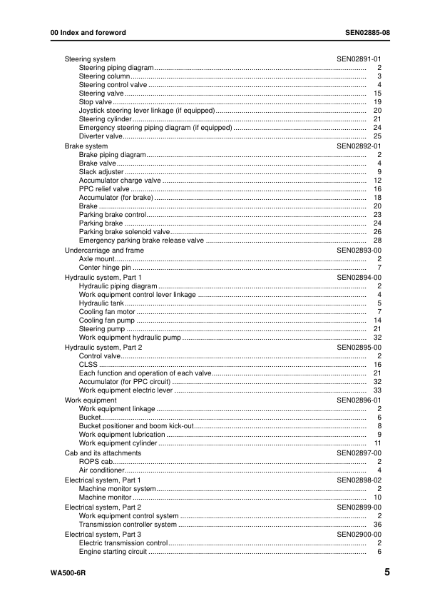 Komatsu WA500-6R Wheel Loader Workshop Manual SN 60001 and UP
