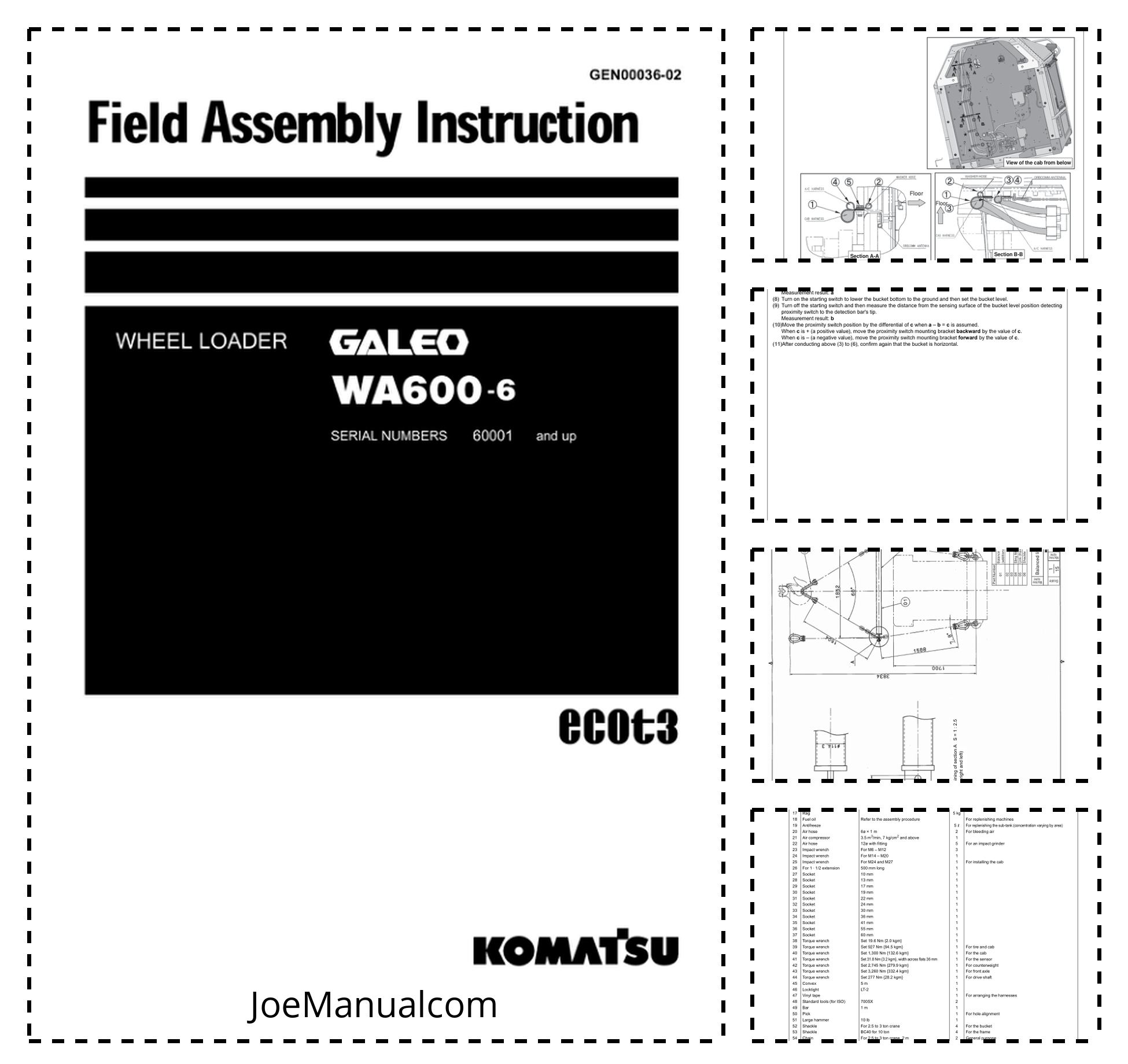 Komatsu WA600-6 Wheel Loader Field Assembly Instruction SN 60001 and UP